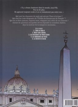 remarques: | fin du cycle avec ce 5ème tome, 5 ans après le tome 4 un album cette fois de 72 pages pour finir la série, les pions sont en place sur l'échiquier mondial et la partie peut connaître son dernier dénouement au coeur de la forêt mexicaine >> p. 3 à 6 introduction au récit avec un combat entre croisés et musulmans actuellement, les sbires de l'ordre du nouveau temple arrivent au Mexique sur l'île de Cozumel >> p. 13 Cozumel ou l'île des hirondelles en langue maya, d'une superficie de 500 km2, située à env. 200 km de la côte est de la peninsule du Yucatan au sud de Cancun dont la majeure partie est inhabitée, est un port d'escale populaire pour navires de croisière, réputé pour la plongée sous-marine l'ordre a pour objectif de manipuler les consciences dès la naissance, par clonage, pour créer l'être humain idéal, sur l'île de Dozumel se trouve un laboratoire dans lequel se déroule des expériences sur la fécondation >> p. 14 le repaire du nouveau temple: un hôtel abandonné >> p. 16 l'ennemi pour ces expériences, c'est l'instinct maternel qui échappe encore au contrôle spirituel >> p. 16 à 18 la chasse à la mère en fuite avec son bébé, seul le môme survivra, la mère sera la proie d'un alligator et Vincenzo part en mission toujours accompagné parfois de la petite fille, son ange gardien fantôme >> p. 23 à 26 l'histoire de la petite fille fantôme, Rachel, soeur jumelle d'Antonella, >> p. 30 description des janitors et l'apparition de deux jumeaux mexicains >> p. 33 rencontre avec la sage-femme de l'île Vincenzo commencera son enquête en s'infiltrant dans la tanière des sbires du renouveau du temple et grâce à sa ressemblance avec son frère jumeau Armando, il parviendra jusqu'au centre vital des laboratoires >> p. 42 la salle des transmissions satellites d'où l'on veut plonger le monde dans le chaos, un chaos destructeur mais libérateur >> p. 50 la nurserie (= la crèche de Satan) toutefois, lors de combats internes, l'ordinateur de contrôle avec tous les foetus qu'il prenait en charge, sera complètement détruit, seuls Armando et el Quadrid de l'ordre du nouveau temple parviendront à s'échapper >> p. 69 à nouveau, critique du progrès >> p. 70/71 de retour au Vatican, Vincenzo prend connaissance de la lettre explicative écrite par Antonella avant de mourir dans laquelle elle révèle le mystère des triplés masculins et des deux jumelles Rachel et Antonella >> un apothéose de feu et de flamme pour finir le cycle, c'est surtout une histoire de jumeaux et de jumelles dans ce dernier tome, pas trop mal imaginé et toujours assez bien dessiné par Boucq annexes - couverture Ier et 4ème plat - extraits de page Information la fin d’un cycle, celui du Janitor de Boucq qui signe aussi une co-rédaction du scénario avec Sente, on s’y était habitué à cet exécuteur des (basses) œuvres du Vatican, plus agent de renseignement que barbouze, un homme efficace, en première ligne pour la Curie romaine qui a aussi ses traîtres en interne, Vince chasse cette fois l’ancien nazi toujours en activité et croise la route d’un type qui lui ressemble comme un frère, sans oublier un fantôme juvénile qui le guide au besoin, Boucq a donné toute sa force sereine à ce Janitor, honnête homme au service de dieu sans pour autant être prêtre une série assez bien calibrée malgré un scénario parfois tarabiscoté et un héros atypique sans revenir sur les qualités de l’exceptionnel dessin de Boucq |