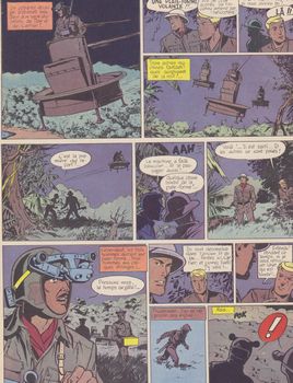 remarques: | l'édition originale française, 4ème plat damiers, dernier titre l'énigmatique Monsieur Barelli, probablement le meilleur album de Weinberg surtout intéressant de par le scenario original et le graphisme/coloriage inégalé de cet album aventures brésiliennes pour Dan Cooper durant laquelle il découvre une base secrète construite par des physiciens réfugiés de la deuxième guerre mondiale et qui grâce à des fusées spatiales ont réussi à établir un satellite artificiel équipé d'un miroir solaire dont la menace peut faire régner la paix sur Terre, malheureusement le méchant Sanders réussira à contrôler ce miroir devenant ainsi le maître du soleil >> une idée originale et un bon graphisme, un récit traditionnel dans la série |