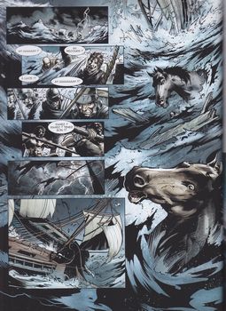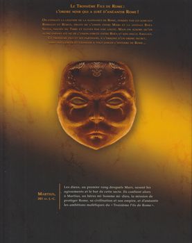 remarques: | début d'une série sur l'histoire romaine les origines de Rome: Enée avec Albe la Longue, comme capitale sur le Tibre, de la fille du roi Numitor naquirent Romulus et Remus, mais d'une autre union serait né le 3ème fils de Rome et qui sera l'objet d'une secte qui combat les vrais romains en 203 BC, durant la deuxième guerre punique, Martius combat pour la gloire de Rome et rejoint en Afrique les troupes de Scipion avec l'aide de Mars Invictus >> p. 20 la tempête qui frappe les navires romains bientôt deux grands fauves vont s'affronter: Scipion et Hannibal, entretemps Scipion se livre à la chasse aux fauves de l'Atlas bataille de Zuma et victoire de Scipion sur Hannibal qui avait fait alliance avec la secte du 3ème fils de Rome, la cavalerie numide de Massinissa fut déterminante lors de la bataille, mais la secte maudite subsistait encore >> un premier album plutôt décevant avec un scénario de faible envergure et un graphisme qui ne vaut guère mieux cinq albums sont prévus de 2018 à 2019 avec le même scénariste mais avec des dessinateur différents, soit: - tome 2, Eunous, le premier Spartacus - tome 3, Sylla et Pompée - tome 4, César et Vercingetorix - tome 5, Marc-Antoine et Cléopâtre mais ne sont plus collectionnés ici Information si le recours à l’imaginaire antique n’est pas blâmable en soi, il ne dispense pas pour autant de le faire avec talent, c’est là que le bât blesse, le postulat d’un demi-frère inconnu, vengeur et soutenu par une confrérie sanglante est séduisant, son implantation dans un épisode fameux de l’histoire romaine est bienvenue, mais la narration laisse sur sa faim, et ce pour plusieurs raisons: les personnages n’ont pas d’épaisseur, les scènes ne sont pas dramatisées (la faute à un enchaînement trop rapide des événements), le souffle épique attendu n’est qu’une légère brise, les dialogues ne sont pas exempts de certaines lourdeurs et nombre de pistes sont ouvertes et bizarrement abandonnées le graphisme, consensuel et lisse, manque de dynamisme et se montre inutilement sanglant dans les scènes de combat, l’œil passe brutalement, et tout au long de l’album, de l’inertie des sujets à des irruptions brutales d’hémoglobine, de jolies cases ponctuent cependant l’ensemble, mais elles demeurent trop rares, c’est dommage car le concept de départ aurait mérité un tout autre traitement, pour s’immerger avec ravissement dans l’époque latine, on préférera Murena, les aigles de Rome ou les premiers Alix |