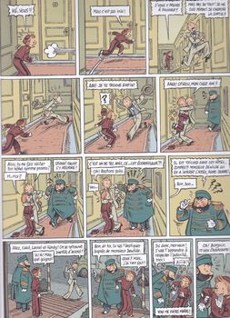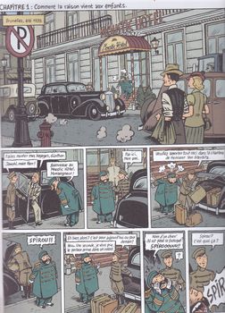remarques: | album cartonné couleur Dupuis 77 pages dans la série une aventure de Spirou sur les origines de Spirou (>> voir aussi album no 37) A) la loi du plus fort l'enfance du jeune Spirou (appelé alors Jean-Baptiste) à l'orphelinat de Saint-Pancrace 1938, il est employé comme enfant de choeur avec son copain René, à la suite d'une négligence mortelle, René est condamné à la prison pour mineurs et Jean-Baptiste transféré à un autre orphelinat, avant de quitter son copain, René lui confie son écureuil Spip comme Jean-Baptiste est assez costaud, il est engagé par l'abbé de l'orphelinat au Moustic hotel, propriété de l'orphelinat, comme chasseur, Jean-Baptiste étant roux et son écureuil s'appellant Spip, il est surnommé Spirou par ses collègues de travail B) le journal d'un ingénu chapitre 1: comment la raison vient aux enfants à côté de son travail de chasseur, Spirou oeuvre aussi comme arbitre dans le club de football ADS (amis de Spirou) >> p. 15 déjà les luttes de classe parmi les enfants Spirou dans son uniforme de groom-chasseur subit les caprices d'Entresol, le chef portier >> p. 20 première rencontre avec Fantasio, journaliste au quotidien le Moustique >> p. 24 le palace de Spirou >> p. 20 au Moustic hotel se déroulent des négotiations secrètes entre l'Allemagne nazie et la Pologne >> p. 30 Spirou qui lit le Petit Vingtième >> p. 33 Spirou est aussi un chasseur de rats (d'hotel) >> p. 37 Spirou habillé en Tintin >> p. 44 Tintin, un héros de la bourgeoisie >> p. 57 tout comme Pimpon (Tintin), Spirou veut devenir reporter-photographe et Spirou aurait presque trouvé une solution favorable aux querelles de l'Allemagne et de la Pologne si un agent du NKVD n'avait pas contribué à saboter les négotiations, les tractations pour la paix échouèrent et ce fut le début de la 2ème guerre mondiale finalement, Spirou changera de métier, mais gardera sa tenue de groom >> une des nombreuses variantes sur les origines de Spirou (l'édition originale parut déjà en 2008 et jusqu'alors aucune suite n'avait été publiée, mais un tome 2 est prévue pour octobre 2019 sous le titre "l'espoir malgré tout, un peu plus loin vers l'enfer" toutefois, tout en restant assez originale, ce premier album n'a rien d'exceptionnel ni pour le scénario ni pour le graphisme, à part peut'être des réflexions sur la politique en général et sur l'époque concernée (avant-guerre 1938-1939) hihihi comme dirait la petite soubrette en plus des nombreuses références au Tintin d'Hergé dans ce contexte, il faut aussi mentionner la série "la véritable histoire de Spirou" aux éditions Dupuis, tome 1 1937-1946 (2013) et tome 2 1947-1955 (2016) et en 2018, l’ONU vient de nommer Spirou défenseur des droits de l’homme, ceci grâce à sa combativité envers les inégalités, sa protection envers les faibles, son courage et sa générosité annexes - couverture de l'album avec extraits - couverture de l'album EO 2008 - tome 1 de la véritable histoire de Spirou - tome 1 le petit Spirou Information A) le journal d'un ingénu obtient le prix des libraires de bande dessinée et le prix Saint-Michel du meilleur album francophone en 2008, retenu en Sélection officielle du Festival d'Angoulême 2009, il est classé dans une liste des cinq albums essentiels de l'année, la même année, il est distingué en Allemagne par le prix Peng du meilleur album européen l'album se passe en 1939, à l'époque où Rob-Vel est encore l'auteur de Spirou, il relate en outre la rencontre entre Spirou et Fantasio et apporte une explication au fait que Spip possède une intelligence humaine, Spirou y tombe amoureux pour la première fois de sa vie, de nombreuses références sont faites à Tintin des Aventures de Tintin à qui Spirou est comparé plusieurs fois il y a trois séries Spirou: - l’une, régulière, actuellement dessinée par de nombreux artistes et qui en est au 57ème album (2024) - l’autre, le Petit Spirou par Tome & Janry, des auteurs qui ont longtemps assuré la série régulière et qui tiennent ici le plus gros succès du groom - la troisième enfin, la plus récente, une aventure de Spirou & Fantasio où des auteurs invités ont la possibilité de réaliser leur rêve, le temps d’un album et de faire leur "Spirou", là aussi, les ventes sont plutôt bonnes, cette politique permet à la marque Spirou d’être régulièrement présente en librairie, une marque qui appartient à Dupuis depuis 70 ans et qui a rejoint le giron de Média-Participations depuis juin 2004 avec Spirou, le journal d’un ingénu, Émile Bravo marque une étonnante rupture avec les auteurs qui l’ont précédé dans cette collection B) les origines en 1938, l'éditeur Jean Dupuis, après avoir édité plusieurs publications dont l’ami du foyer, le roman et le fameux Moustique (qui s'est appelé Télémoustique pendant plusieurs dizaines d'années), crée le journal de Spirou, il engage le dessinateur Robert Velter, dit Rob-Vel, pour animer le personnage titre du journal, Rob-Vel reprend un protagoniste qu'il a déjà utilisé épisodiquement pour des affiches de publicité, un jeune groom aux cheveux roux, et le met en scène dans ce rôle au Moustic Hotel (référence au journal Moustique, également publié par Dupuis), Rob-Vel est aidé dans sa tâche par sa femme Blanche Dumoulin qui écrit les scénarios de la bande dessinée et par le peintre Luc Lafnet, qui l'assiste sur diverses séries, une incertitude demeure quant au rôle exact tenu par Lafnet dans la création du personnage de Spirou: il est possible que la toute première planche soit en réalité l'œuvre de Lafnet, auquel Rob-Vel, pris par ses autres séries, aurait délégué la tâche le dessinateur qui est représenté donnant vie à Spirou ressemble en effet à Lafnet et non à Rob-Vel, il est également possible que Rob-Vel et Luc Lafnet se soient partagé la réalisation de la planche, Rob-Vel dessinant le personnage de