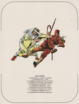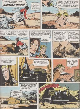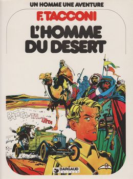 remarques: | dans la collection un homme, une aventure, première édition, tome 9 une page de la 1ère guerre mondiale menée dans le désert sous les auspices de Lawrence d'Arabie, préface de deux pages sur Lawrence d'Arabie que les arabes surnommaient el Aurans après ses offensives victorieuses contre l'armée turque, Lawrence tient à réaliser une nation arabe unie, il échoua, trahi par une politique manipulée par les grandes puissances européennes, son rêve d'unité s'évanouira tel le mirage trompeur du désert mais du moins, il sera entré dans la légende l'homme du désert est ici l'histoire du soldat anglais, Bertram Prott, un homme quelconque qui vécut une aventure dans le désert >> p. 14 en biplan au-dessus du désert avec l'espionne baronne Tania Zarova et abattu par un avion allemand, tous les deux erreront dans le désert avant d'être capturé par un sheik qui veut faire de la baronne sa maîtresse >> p. 27 en fuite avec une Rolls-Royce de luxe et blindée, ils sont pourchassés par des bédouins sur dos de dromadaire >> p. 40 rencontre avec Lawrence avec qui Bertram fraternisera >> un récit plein d'actions ensablées avec l'espionne et le déserteur qui deviendra l'homme du désert, scénario intéressant et bon graphisme |