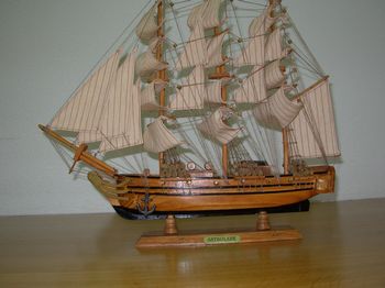 remarques: | l'Astrolabe (précédemment L'Autruche) est le navire de l'expédition autour du monde entreprise par Jean-François de La Pérouse en 1785, à l'initiative du roi Louis XVI ci-dessous mini-modèle de la frégate Astrobal avec le portrait du navire dans les glaces |