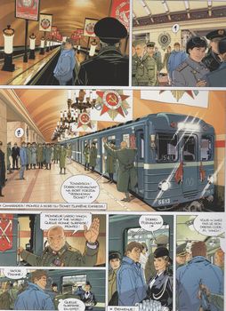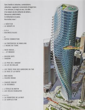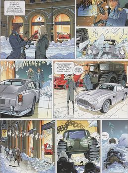 remarques: | la suite des aventures russes de Largo Winch réussira in extremis à échapper à la mort avec sa disciple Mary dans les locaux de la Silver Trading et il se prépare après coup à rencontrer le voleur de ses titres de la Zukunftsanstalt >> p. 13 le rendez-vous dans le métro de Saint-Petersbourg (qui ressemble beaucoup à celui de Moscou) fuite avec la jolie Ksenia Naievna, l'impétueuse dircom (= directeur commercial) du forum de Thalos, en fait c'est une agente du FSB (service anti-corruption russe) >> p. 20 dans sa fuite, Largo néglige l'Aston Martin de James Bond pour un parfait bolide tout-terrain amphibie mais malgré sa fuite, Largo retombe dans les griffes du milliardaire russe Sokoliev, Largo et Ksenia seront sauvés lors d'un jeu de massacre organisé dans la datcha de Sokoliev commandité par la jolie Natalia au service d'un autre magnat de la finance russe: Palnine, mais en fait le vrai instigateur, c'est le fond de placement Karista Equity aussi puissant que mystérieux entretemps, l'opération Debreau (le vol des titres de Largo) avait échoué, car les titres avaient été remplacés par des faux, Largo ayant eu vent de l'opération et fin du drame Winchiste avec le suicide (un faux suicide, en fait un meurtre) de Gessner, le responsable des banques de groupe Winch qui avait trahi son patron n.b. Gessner, référence à Gessler, le bailli dans Guillaume Tell?) enfin, Largo démasquera et se débarrassera de ceux qui tiraient les ficelles derrière lui: Natalia la tueuse et Palnine, surnommé cute inside on nous dévoile aussi par la même occasion l'explication sur le titre de l'album "les voiles écarlates" = titre du roman russe Alye Parussa et qui était aussi le nom du yacht de Palnine >> cette fois, si le graphisme de Francq reste acceptable, Giacometti ne s'est pas trop surpassé malgré les nombreuses citations et explications sur les bourses mondiales annexes - 1er et 4ème plat de l'album - deux illustrations de l'album |