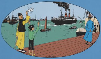 remarques: | à la découverte des grands port du monde dans les aventures de Tintin, photos: collection Studios Hergé et Ouest France, un album documentaire de 128 pages découverte des ports par où Tintin avait transité, les ports de St-Nazaire et de la Rochelle occupant une place particulière les deux navires les plus célèbres des aventures de Tintin: le cargo Pachacamac et le yacht Ramona dans l'album peut'être le plus maritime: coke en stock avec l'indispensable capitaine Haddock >>p. 8/9 carte des ports visités par Tintin (dans le monde entier sauf en Australie) 1/ St-Nazaire en aval de Nantes, à l'embouchure de la Loire, un port qui n'existe plus ayant été rasé par les bombardiers alliés en 1944, Tintin et Haddock s'y rendent en 1942 dans une Lincoln Zéphyr jaune après-guerre des constructions navales y sont installées et remplacent le port transatlantique qui était au début du XIXème siècle une porte maritime vers l'Amérique >> p. 18 six panneaux de Tintin dispersés dans la ville y rappellent le séjour de Tintin et Haddock n.b. les trois premiers ports français: Le Havre, Marseille et Dunkerque 2/ Anvers (= Antwerpen = jeter la main, Hand werfen) port de départ pour de nombreuses aventures de Tintin, mais ce port ne sera plus expressément nommé après l'épisode de l'étoile mystérieuse, toutefois c'est du port d'Anvers que Hergé continuera de se fournir pour dessiner les ports >> p. 24 un navire célèbre à Anvers: le Karaboudjan 3/ Ostende (port de pêche et station balnéaire belge) port de départ pour traverser la Manche (l'île noire), la malle = car-ferry Ostende-Douvres) de l'époque, cette liaison n'existe plus depuis 2014 4/ Akureyri (Islande) à la recherche de l'étoile mystérieuse 5/ Le Havre de retour d'Amérique, Tintin s'embarque sur le Normandie pour rejoindre Le Havre, description du Normandie qui coula à cause d'un incendie dans le port de New York en 1942 6/ La Rochelle après avoir quitté St-Nazaire, Tintin et Haddock se rendent au port de La Rochelle rendre visite au capitaine Chester (7 boules de cristal) et y découvrent le Pachacamac 7/ Marseille Tintin embarque à Douma (Syldavie) sur un hydravion qui fait partie de la ligne régulière d'hydravion reliant Marseille à la Syldavie (dernière page du sceptre d'Ottokar), Marseille est alors considérée comme la métropole de l'empire avec les messageries maritimes à destination de l'Afrique du Nord et de l'Extrême-Orient par le canal de Suez, elle est aussi le siège du trafic d'opium avec la Chine (Shanghai, le lotus bleu) n.b. l'hydravion transportant Tintin est un multimoteur Lioré et Olivier type H242 de 1933 8/ deux chapitres sur Haddock, le vieux marin le pitoyable marin qu'est alors Haddock sera sauvé par Tintin sur le Karaboudjan, avec le crabe aux pinces d'or, débute le cycle maritime des aventures de Tintin dans le journal Le Soir d'octobre 1940 et Hergé évitera maintenant l'actualité en reportant ses scénarios sur les aventures, envoyant dès lors Tintin sur les mers avec les ports imaginaires de Bagghar et Wadesdah Haddock doublera désormais Tintin dans ses aventures et deviendra le personnage préféré des lecteurs >> p. 49 Hergé dira que si Tintin est l'homme qu'il devrait être, Haddock est l'homme tel qu'il est avec ses défauts mais aussi avec sa générosité et son amitié fidèle >> p. 47 avec bachi-bouzouk et mille sabords dont mille millions de mille milliards de mille sabords de tonnerre de Brest, tonnerre de Brest fait partie des jurons préférés d'Haddock >> p. 47 les origines du juron tonnerre de Brest, ville portuaire de Bretagne; aucune aventure de Tintin n'ayant fait escale dans ce port qui contenait un bagne créé en 1750 dont les coups de canon signalaient une évasion, d'où peut'être tonnerre de Brest >> p. 51 le vrai capitaine Haddock: Herbert James Haddock alors que le prénom d'Haddock est Archibald (Picaros) n.b. Herbert James Haddock (1861-1946) was an English naval reserve officer and ship's captain, and was best known as the captain of the RMS Olympic at the time of the sinking of the Titanic, he was the first person to captain Titanic, overseeing the ship at Belfast while her delivery-trip crew was assembling there (1912), a 1911 story in the New York Times described Haddock as the "only skipper in the Atlantic trade who wears the mid-Victorian mutton chop whiskers without a beard or mustache" 8/ Matadi, la porte d'entrée de la Belgique en Afrique à Anvers, Tintin embarque pour le Congo à bord du Thysville, 5000 km et une quinzaine de jours de navigation, le Congo est 80x plus grand que la Belgique avec 8 millions d'habitants dont 25'000 colons (juin 1930) Tintin va chasser, en fait le Petit XXème encourage des vocations coloniales chez les jeunes lecteurs belges depuis Matadi, à l'embouchure du Congo, une ligne de chemin de fer réalisée entre 1890 et 1898 relie Matadi à Leopoldville (400 km) 10/ Port-Saïd, porte du royaume des pharaons qui relie la Mer Rouge à la Méditerranée via le canal de Suez, un port incontournable à cette époque et c'est dans les cigares du pharaon que Hergé fait vivre (sans le nommer) l'aventurier, contrebandier et écrivain français Henry de Monfreid (1879-1974) 11/ Djibouti, au carrefour de trois continents mentionné dans coke en stock (1958) coke = langage codé pour les esclaves qualifiés d'ébène vivant >> p. 64/65 description du port franc stratégique de Djibouti situé en 1967 dans le territoire français des Afars et des Issas, qui devient indépendant en 1977 sous le nom de République de Djibouti épisode qui réunit tous le stock des personnages d'Hergé avec le célèbre cargo Ramona et le yacht Shéhérazade >> p. 66 à 71 comment Hergé se documentait pour illustrer les ports et les navires, au début, il dispose de la photothèque du quotidien du XXème siècle, puis après coup il se constitue sa propre documentation (plus de 20'000 feuillets) avec son clas