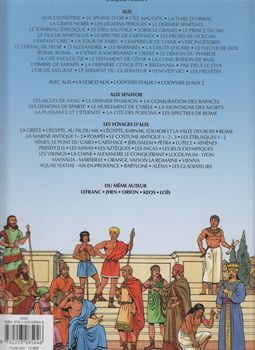 remarques: | dernier album de la série "les voyages d'Alix" avec C. Goumand au scénario et M. Venanzi au graphisme 1/ chronologie de l'histoire de l'Helvétie (-35,000 à +476) 2/ les traces romaines en Helvétie - Nyon est la grande ville de l'époque sur le lac Léman, fondée par César, - Avenches, la capitale des Helvètes - Augusta Raurica est la 3ème colonie romaine en Helvétie, fondée par Lucius Munatius Plancus - fondation du castrum d'Yverdon - les forts construits sur le Rhin tel Vindonissa (Windisch) et le plus important: Kaiseraugst - routes carossables du Grand Saint Bernard et de Pierre Pertuis 3/ les premiers Neanderthaler des chasseurs qui laissent des traces à St-Brais, Cotencher et Wielkirchi (15'000 BC), puis l'homme se met à la culture et à l'élevage, il devient séculaire, c'est la période néolithique (5000 BC) ensuite vient l'âge du bronze (3800 à 800 BC) et l'âge du fer: 1ère période Hallstatt et 2ème période La Tène création des premiers courants commerciaux et des tumulus (tombes), lieux de passage à Bienne et Neuchâtel, découvertes d'objets d'ordre militaire les Helvètes dont les Celtes occupent surtout la Romandie 4/ migration des Helvètes 368'000 hommes en 81 BC dirigés par Orgétorix et Divico veulent rejoindre les côtes de l'Atlantique, ils sont arrêtés par César qui les renvoie dans leur patrie qui sert d'état tampon pour l'empire romain contre les germains, l'Helvétie occupe alors une position stratégique 5/ forum Claudii Vallensium Octodorus (57 BC), relais commercial qui sera appelé par la suite Martigny, première colonie romaine après avoir franchi le Grand Saint Bernard, c'était la route la plus directe entre Rome et le nord de la Gaule, elle disposait d'une route pavée depuis Martigny >> p. 15 les quatre tribus qui habitaient alors le Valais: Nantuates, Veragres, Sédunes et Ubères 6/ Lousonna (Lausanne) se développe sur le lacu Lausonio dès le milieu du Ier siècle comme vicus = petite agglomération, devient un carrefour commercial important pour l'empire romain n.b. le col du Gothard n'existe pas encore et les cols via les Grisons (Splügen et Julia) ne seront ouverts que plus tard >> p. 16 Lousonna est un lieu de rupture de charge pour le transport par voies navigables entre les bassins rhodaniens et rhénans 7/ Nyon, nom romain: colonia Julia Equestris ou Noviodunum (= nouveau rempart) n.b. une colonie romaine est constituée d'un chef-lieu (ville) et d'un territoire, le chef-lieu abrite le centre politique et administratif de la région, le territoire confisqué aux Helvètes est cadastré et divisé en lots donnés en guise de retraite aux soldats qui ont servi 20 ans dans l'armée romaine, ceux-ci sont libres de les cultiver, d'y construire une ferme ou de les vendre le site de Nyon a été choisi stratégiquement, car il s'agit du lieu où le territoire est le plus étroit entre le lac et la chaîne du Jura, permettant aux Romains de bloquer facilement l'accès des Helvètes au reste de la Gaule la colonia Julia (fondée par Caesar) disposait d'un amphithéâtre, de thermes, d'une basilique et d'un forum >> p. 20/21 à proximité se trouve la splendide villa de Communy, villa gallo-romaine, richement ornée de peintures murales 8/ les routes >> p. 26 le réseau routier est un élément capital pour l'empire, il facilite le commerce et permet un déplacement rapide des troupes et des informations, le réseau était doté de relais-étapes disposés tous les 30 km les routes ne sont pavées qu'à l'intérieur de certaines villes, la plupart du temps, elles sont en terre battue, recouvertes de graviers ou impierrées, inclinées sur les côtés afin d'évacuer les eaux pluviales >> p. 27 les voies romaines de Pierre Pertuis et de Courtedoux >> p. 29 les voyageurs ont à leur disposition des cartes routières, on peut y voir 200'000 km de routes couvrant l'empire romain, un cavalier parcourt environ 70 km par jour, un piéton 30 km et un char attelé 20 km par jour, le transport par bateau est plus lent, mais peut prendre des cargaisons plus importantes 9/ les voies navigables lorsque Rome étend son empire, le commerce des marchandises prend un essor considérable, tenant en considération toutes les voies navigables sur les lacs et les fleuves un bateau comme les chalands à fond plat découverts pouvait transporter 10 tonnes de marchandises, soit l'équivalent de 30 chars tirés par 2 boeufs chacun 10/ Avenches = Aventicum ou colonia Pia Flavia Constans Emerita Helvetiorum située au coeur du plateau suisse, Avenches occupe une situation stratégique au centre des voies de communications routières et navigables, traversant le territoire helvète dont elle est la capitale à cette époque les premières implantations romaines datent de 6 ap. J-C. où à cette époque, on construit un port sur le lac de Morat Avenches est faite colonie romaine d'importance, ses habitants deviennent citoyens romains, par l'empereur Vespasien qui avait eu des liens étroits avec l'Helvétie, une helvète, Pompeia Gemella, ayant été la nourrice de Titus, fils de Vespasien 11/ la campagne l'arrivée des romains bouleversa complètement l'organisation agricole des Helvètes qui, jusqu'alors, vivaient en petite communauté quasi autarcique afin de ne pas épuiser les sols, les Romains pratiquaient l'alternance des cultures, parfois avec des périodes de jachère; la vigne était cultivée en Suisse, avant la présence romaine, du moins dans le Haut-Valais, introduite probablement par les cols alpins reliant le Valais à l'Italie et au Tessin l'élevage prend également de l'essor avec l'âne et le mulet importés de Méditerranée, c'est à cette période que le chat et le petit chien font leur apparition sous nos latitudes en tant qu'animaux domestiques 12/ la campagne, les villae rusticae les villages étaient rares à l'époque romaine, l'exploitation des terres repose principalement sur le système des villa rusticae av