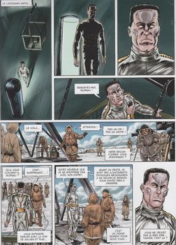 remarques: | une équipe est descendue à la recherche du pilote Murnau, mais arrivée au fond, Murnau a complètement disparu un peu plus tard, Murnau réapparait avec quelques explications sur le soi-disant vaisseau extra-terrestre arrivé il y a 10'000 ans, il gisait sous la glace et le bombardement du forage lui a rendu la vie, c'est une intelligence qui vient de l'espace mais alors comment expliquer que cette intelligence est déjà intervenue lors du débarquement en Normandie, y aurait-il un deuxième extra-terrestre? les nazis cherchent maintenant à s'approprier l'arme fabuleuse baptisée Thor >> p. 40 apparition de l'extra-terrestre sous les traits d'un humain nazi et il effectue une démonstration de ses pouvoirs pour impressionner Himmler >> à nouveau un album qui manque de panache, malgré un graphisme encore convenable, les Wunderwaffen commencent à moins "wundern" et la suite de la série (encore 12 albums) ne sera plus collectionnée ici: - tome 9, le visiteur du soir (2016) - tome 10, la nuit des armes miracles (2017) - tome 11, l'ombre de Wewelsburg (2017) - tome 12, les pièges du temps (2017) - tome 13, Tokyo, bombe A (2018) - tome 14, le feu du ciel (2018) - tome 15, opération Gomorrhe (2019) - tome 16, cette guerre est nôtre (2019) - tome 17, l'antre de la cruauté (2020) - tome 18, entre la vie et la mort (2021) - tome 19, la colère des dieux (2021) - tome 20, ennemis de l'intérieur (2022) Information - dans ce genre, il y aura encore deux autres séries: a) space reich, 5 albums parus (la course à l'espace avec Von Braun) b) Zeppelin's war, 4 albums parus (sur la 1ère guerre mondiale) |