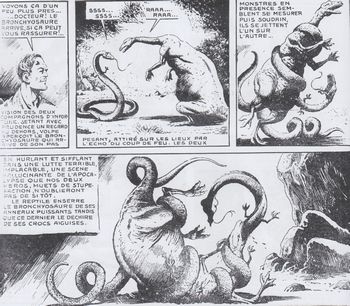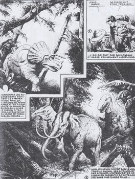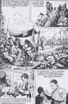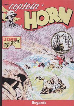 remarques: | album reprenant les aventures de Captain' Horn (138 pages) qui ont paru dans Youpi aux éditions du Siècle à Lyon (Imperia), parution initiale en 9 fascicules du 20.12.1948 au 1.9.1949 pour les 9 premiers épisodes (avec couvertures des neuf fascicules) + épisodes 10 à 12 (sans couvertures) ayant paru dans le fanzine Hop, nos 81-83-85 (1999-2000) n.b. il existerait un numéro 0 (?) Captain' Horn est une BD d'aventure créée en 1943 par Enrico Bagnoli, les scénaristes sont: Luciano Pedrocchi et Cesare Solini et les magnifiques couvertures sont de Robba (Robert Bagage) - BD originale parue à l'origine en Italie aux Editions Alpe avec comme titre: le piu belle avventure (les plus belles aventures) - une série inachevée les éditions du Siècle ne publièrent pas la série dans sa totalité et loin s'en faut, l a série originale compte environ 70 numéros (serie piccola il fiore inaccessibile 1944-1946) et la suite: il fiore maledetto (serie grande 1946 à 1948) - la série jusqu'à "l'épilogue" comportait 18 épisodes, les 9 premiers ont paru dans Youpi et trois numéros 10-11-12 ont été publiés dans les fanzines Hop 81, 83 et 85, Lina Buffolente poursuivit la série avec les nos (13 à 18) les six épisodes manquants s'intitulaient: - no 13 naufrage (naufragio), - no 14 mystère dans l'île (mistero all' isola) - no 15 la trombe marine (la tromba marina) - no 16 guet-apens dans la forêt (agguato nella foresta) - no 17 l’homme aux deux visages (l'uomo dai due volti - no 18 épilogue tragique (tragico epilogo) - le titre Volpe est une référence à l'oncle maternel du héros Ted Horn, il s'agit en fait d'une adaptation très libre en BD du fameux récit de Frank Richard Stockton " the adventures of captain Horn" de 1910 résumé - à Budapest le prof. Bornos et son assistant Kalma font des recherches pour combattre la peste noire, c'est un échec - par la suite Captain' Horn, cousin du prof. Bornos, lui rend visite en lui apportant le journal de Michel Volpe, un commerçant de Livourne qui a découvert en 1620 une fleur qui aurait le pouvoir de guérir la peste noire, située sur l'île de la terreur dans les environs de l'archipel de Tristan da Cunha >> pages 3 à 12 les péripéties de Volpe et de son compagnon de route, le dr Van Holsen, sur une île déserte - l'histoire des nouveaux Robinson se poursuit sur l'île des sauvages et des monstres préhistoriques où l'on découvre la fleur fantastique mais sans pouvoir s'en emparer et l'un des deux infortunés y laissera même sa vie - en conséquence le prof Bornos et le captain' Horn décident de retrouver l'île perdue et de s'emparer de la fleur - après avoir atteint l'île pratiquement inaccessible et après avoir évité de nombreux dangers, l'expédition rejoint une tribu de pygmées où se trouvent déjà l'argentin Alvarez et sa fille Hermina échoués sur l'île sans espoir de pouvoir la quitter - et finalement on trouve la fleur magique appelée haloi par les pygmées - malheureusement un membre de l'expédition les trahit et s'enfuit avec la fleur y compris les analyses et le sérum inventé par le prof Bornos, toutefois le traître ignore que le sérum n'est pas au point et qu'injecté aux malades, il leur donnera la mort - finalement, le prof Bornos et captain' Horn réussiront à arrêter le criminel, mais la fleur et les sérum sont perdus - une nouvelle expédition est préparée, mais ne verra pas le jour dans cette réédition >> un récit quelque peu naïf mais bien imaginé sur le thème du monde perdu, un graphisme particulier qui a tendance au dessin teinté de noir, mais qui devient quelque peu ligne clair dès l'épisode X avec parfois une traduction imparfaite du texte original en italien annexes - 1er et 2ème plat de la réédition - couverture du 18ème épisode - couverture du roman 1910 - couvertures nos 7 et 9 (dernier fascicule) avec l'explorateur Horn muni d'un fusil-mitrailleur relativement moderne - illustrations Information il est collectionné un numéro isolé no 1 le coffre mystérieux >> voir RC Captain' Horn |