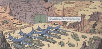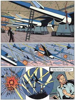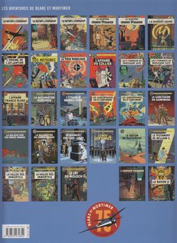 remarques: | - tome 22 (sans compter les diptyques mais avec rayon U), respectivement tome 28 sur le 4ème plat, dernier album de la série, un prochain album n'est pas encore annoncé - c'est quelque peu le complément des albums secret de l'espadon, bâton de plutarque et la vallée des immortels - début supposé être en janvier 1948, quatre ans avant le décès du roi Georges VI, père de la future reine Elisabeth II qui apparaîtra dans les albums: l'onde Septimus et le cri du Moloch - le récit commence à Londres et à la base secrète >> p. 7 la pyramide de Makran (qui est située non au Pakistan, mais plutôt en Iran où est aussi l'entrée terrestre de la base, l'autre entrée terrestre de la base en Oman n'a jamais été mentionnée et dans cet album, l'entrée serait située de l'autre côté du détroit (en Iran et non au Pakistan), mais alors comment ont été transportés les espadons dans ce tunnel étroit sous le détroit du ras Musandam? à voir avec Van Hamme pour résoudre ce problème) >> bien sûr, on a pu démonter et remonter les espadons, mais quel travail! et non mentionné dans le récit >> p. 10 il y a quand même une femme dans le club très british du Centaur club malgré l'embrassade de Blake et Mortimer qui surprend deux gentlemen du club >> p. 11 Blake n'est pas tendre avec l'ancien testament >> p. 12 une page dédiée aux espadons >> p. 13 la page des espadons >> p. 21 la sortie (qui n'est plus secrète) des espadons >> p. 20 une fois on est à 5000 km plus à l'est et une autre fois on est à 3000 miles plus à l'ouest (p. 35) >> p. 31 on fume beaucoup la pipe dans les aventures de Blake et Mortimer >> p. 33 réapparition d'Olrik, cette fois bien dans sa peau >> p. 34 Mortimer et son larbin indien, indien mentionné aussi par Olrik en page 39 alors qu'en page 64 les gentlemen du club parlent d'un hindou >> p. 35 les deux agents double zéro du MI6 >> p. 38 une page de western où Nasir est un adversaire redoutable >> p. 39 Olrik dans toute sa splendeur dans son uniforme de colonel et avec son porte-cigarette, qui bénéficie aussi en page 40 d'un grand confort et qui retrouve sa fameuse voiture décapotable >> p. 42 Olrik sauve la vie de Mortimer pour pouvoir le faire parler en torturant Nasir, mais en restant toutefois humain en envoyant Nasir à l'infirmerie après l'interrogatoire >> p. 47 avec le sergent Morrisson, c'est une Moneypenny avant la lettre un peu dodue mais qui agit pour Dieu, l'Angleterre et son roi et un peu pour Blake >> p. 48 tel est pris qui croyait prendre >> p. 55 le MICE ou les 4 motifs pouvant pousser quelqu'un à trahir: 1/ l'argent 2/ l'idéologie 3/ chantage (en kidnappant un être cher ou en menacant de révéler un secret honteux et 4/ l'Ego (sentiment de jouer un rôle important) >> p. 62 des exécutions à la chaîne (comme lors de l'évasion de Mortimer dans le secret de l'espadon) >> p. 63 c'est la première fois où l'on voit un espadon atterrir conclusion - retrouver l’espadon, Olrik bien sûr, Blake et Mortimer, face à un nazi et à l'IRA qui veulent faire un gros boum sur Buckingham Palace, Londres une fois de plus attaquée, que demander de plus si en prime, façon de parler, c’est Jean Van Hamme qui est au piano pour interpréter sa propre symphonie - où l'on retrouve auss d'anciens compagnons, tel Nasir, le bezendjas, le major Hudson, l'inspecteur Kendall de Scotland Yard et le commander Steel du MI6 (secret intelligence service, renseignements extérieurs) alors que Blake lui est commander du MI5 (contre-espionnage) - mine de rien, Van Hamme a bien secoué le cocotier, joué d’humour, d’allusions, repris la grande histoire en toile de fond, l’IRA entre autres qui est ici manipulé par un officier SS ancien du commando Brandebourg qui avait projeté en 1940 de faire sauter Buckingham Palace, Van Hamme fait aussi ici un clin d’œil aux agents 00 - on est revenu en arrière de belle manière, en 1948, avec une histoire aérienne, tordue et machiavélique même si l’on sait que tout finira bien old chap, - écrit par un grand scénariste qui sait ce qu’est une bonne BD avec tous les ressorts nécessaires, ce qui n’est pas toujours le cas pour Blake et Mortimer - on bénéfie aussi d'un très bon graphisme, Teun Berserik et Peter Van Dongen réalisant peut'être le meilleur graphisme après celui du maître Jacobs (tout comme le premier tome de la vallée des immortels) annexes - couverture et 4ème plat de l'album édition normale - la pyramide du Makran - la page des espadons - la sortie des espadons - dernière page, god save the king (1948, c'est encore le roi et pas la reine!) - couverture de l'édition bibliophile, avec jaquette, tirage numéroté et limité avec hors-textes et ex-libris - couverture de l'édition spéciale pour Canal BD avec un cahier de 16 pages de crayonnés - couverture de l'édition FNAC avec cahier graphique n.b. la meilleure couverture étant probablement celle de l'édition normale - deux illustrations inédites |