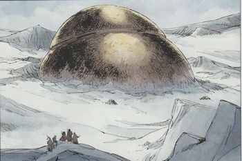 remarques: | - 39ème volume de la série et troisième album repris de Rosinski par F. Vignaux et Yann - de retour des épreuves effectuées chez l'ermite Skellingar, Thorgal avec son fils Jolan et sa fille Louve sont sur le chemin du retour vers leur village - rencontre avec un mystérieux navire (un knörr) sur lequel se trouve un rescapé de monstres hideux n.b. un knörr est un type de navire marchand à bordages à clin utilisé par les vikings, ces navires étaient particulièrement adaptés pour la navigation en haute mer, les deux autres étaient le byrding (byrðingr) et le karv (karfi) bordage à clin = recouverts comme les ardoises d'un toit (se surplombant l'une l'autre) - arrivés au village, nos amis constatent que les villageois ont été les victimes d'un sortilège causé par des forces obscures, ils y retrouvent Kriss de Valnor, cheffe d'une équipe de brigands et pour délivrer les villageois du maléfice, Thorgal doit à nouveau se rendre dans la montagne d'acier située dans le territoire des slugs à la recherche de redoutables armes atlantes (>> voir le tome 2 l'île des terres gelées) >> p. 35 des moustaches vraiment très longues - après de nombreuses péripéties, Thorgal pourra pénétrer dans le vaisseau du dominant, autrefois habité par Slive, mais il devra faire façe au système central du vaisseau où apparait un nouveau personnage: la femme-ordinateur Neokora, - scénario et graphisme qui ne valent peut'être pas ceux de Rosinski, mais conforme à la série Thorgal, le récit est complété par des recherches graphiques en fin d'album annexes - couverture de l'album - illustration de la montagne d'acier - recherches graphiques (un monstre) |