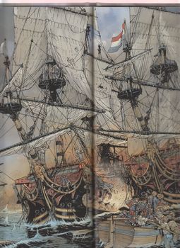 remarques: | tome 8 texte et dessin de Delitte 1694, Versailles, Jean Bart appelé près du roi Louis XIV pour une mission délicate et très secrète: escorter un convoi de blé provenant de la Mer du Nord fin juin, l'escadre de Jean Bart quitte Dunkerque et rencontre les 120 navires chargés de blé, mais ceux-ci ont été capturés par la flotte hollandaise et une bataille navale va se dérouler à Texel (une île près de la Hollande du Nord) où Jean Bart remportera une grande victoire et fait rare, Bart sera anoblit et nommé contre-amiral de la flotte Royale >> p. 30 peut pas chier en paix après presque 30 pages d'intrigues, d'épopée navale et de trahison, la bataille sera bien illustrée par Delitte comme d'habitude, toutefois cet album est un des plus faibles de Delitte dossier historique en 1694, on est en pleine guerre de la Ligue d'Augsburg, la France est en proie à une crise financière et la famine frappe, notamment de par le manque de blé qu'il faut importer tout en se battant contre l'Angleterre et son allié les Provinces Unies Louis XIV pour soulager la Royale (la marine du roi) va accréditer la stratégie corsaire (guerre de course) par lettre de marque, c'est à dire légale et confie l'armement de ces navires aux armateurs qui recevront une part sur la prise du butin prélevé surtout aux navires marchands un corsaire n'est pas un pirate, en général s'il est fait prisonnier, il sera libéré contre rançon alors qu'un pirate est considéré comme un brigand et capturé, sera pendu haut et court (haut pour qu'on le voit de loin et court pour économiser la corde) Dunkerque (ville flamande du nom de Duinkerk voulant dire l'église dans la dune) était alors considérée comme un port corsaire par excellence et aura donné naissance à l'un des plus grands marins français: Jean Bart en juin 1694, Jean Bart reçoit de Louis XIV la mission d'escorter une flotte de 120 navires marchands chargés de blé que le roi avait payé de sa cassette privée ces navires gardés par quelques navires suédois jusqu'au Danemark continuent leur chemin sans protection et seront capturés par la flotte hollandaise, mais avant de rejoindre un port hollandais, la flotte de Jean Bart va rencontrer la flotte hollandaise de l'amiral de Vries; il en résulte un combat homérique, la témérité de la flotte français qui adopte la tactique de l'abordage va avoir raison de la puissance de feu de la flotte hollandaise et la victoire de Jean Bart sera totale malheureusement après de nombreuses autres victoires, ce grand marin décédera en 1702 à 51 ans d'une pleurésie mal soignée à une époque où un homme sur deux succombe avant sa vingtième année |