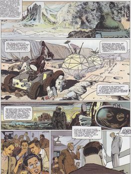 remarques: | le fugitif continue sa course du lièvre, d'abord à travers un super-marché déguisé en père Noël en laissant une hécatombe derrière lui, mais toujours sans en être la cause, toujours recherché par des agents spéciaux dont l'origine reste toujours encore inconnue >> p. 14 il se faisait l'effet d'un lièvre au moment de l'ouverture de la chasse - un peu plus tard, le lièvre rend visite à Mme Gentil, une psychothérapeute non voyante avec laquelle il continuera ses péripéties >> p. 21 l'histoire de David Rutherford engagé par la World Study Project comme spécialiste en microbiologie où le rejoint un autre spécialiste, le prof. Schtrompe, un astrophysicien >> p. 33 la théorie de la terraformation = transformation d'une planète pour la rendre habitable grâce à une bactérie qui se nourrit de gaz carbonique comme les feuille et qui rejette del'oxygène, cette bactérie se multiplie par million en quelques heures >>p. 38 le retour sur terre inexpliquée et inexplicable fin du récit Alice Gentil, la psychothérapeute décide de rester avec le lièvre de son plein gré >> un scénario qui donne quelques explications tout en restant intéressant, idem pour le graphisme, un nouveau cycle est né: Alice et le lièvre de Mars, ne manque plus que la reine de pique n.b. la réédition comporte la même couverture |