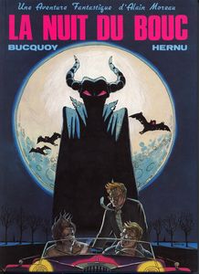 remarques: | une aventure satanique et fantastique d'Alain Moreau dédiée à l'heure du bouc avec tout l'ingrédient nécessaire (mandragore, les chevaucheurs de boucs et l'assemblée satanique) >> p. 19-27 le soûper à l'auberge du canal = une étude de personnages avec Alain Moreau dont le nom rappelle la mort >> p. 24 le serment des chevaucheurs de boucs prononcé par une bande de malfaiteurs sur la main d'un pendu >> p. 26 la cuisine à la mandragore >> p. 29 l'heure du bouc >> p. 39 assassinnée au lieu de assassinée >> polar noir et morbide avec un texte intéressant, un graphisme original et une jolie couverture d'album n.b. il y a eu un premier album intitulé tome 0 "retour au pays noir" (1982) mais non collectionné ici annexes - couverture de l'album - extrait de page - l'heure du bouc - couverture tome 0 |