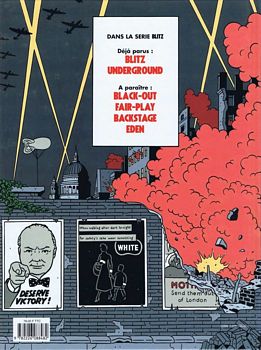 remarques: | la suite du Blitz, toujours raconté en pièces de théâtre, cette fois l'action se passe dans deux stations du Underground durant les bombardements 1er acte: station Cecil Court dans West End, le quartier de la high society 2ème acte: station Plumton dans East End, le quartier du petit peuple >> un 2ème volume qui reprend les traces du premier "Blitz" mais qui est de loin de moins bonne essence différence entre l'édition originale montrant sur la couverture l'affiche "air raid shelter" remplacé dans la réédition par l'affiche "V for victory" (voir photos) annexes - couverture 1er plat EO (1996) - couverture 4ème plat EO (1996) - couverture 4ème plat réédition (2005) (remarques >> voir plus haut) |