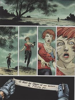remarques: | début d'une série passionnante mi-science-fiction mi-fantastique, le premier cycle comporte 6 volumes et un deuxième cycle suivra les stryges = démons ailés n'apparaissant vraiment qu'à partie du tome 3 USA 1997, un attentat dirigé contre le président US est évité de justesse à l'usine atomique de Southgate grâce à une intervention extérieure et inconnue, le cadavre d'une créature mystérieuse est retrouvé dans les décombres, l'agent Kevin Nivek responsable de la protection rapprochée du président US est limogé Debrah, un dark agent de l'organisation des "ombres" se voit confier la mission de surveiller Kevin Nivek qui enquête maintenant pour son compte concernant l'attentat sur le président >> p. 15 il ne reste plus à Kevin qu'un vieux chat baptisé "vampire" comme confident Melly = docteur Melinda Chapman, amie de Kevin, est chargée de l'autopsie du cadavre mystérieux mais déjà le département de défense US essaie de camoufler toute l'affaire, Melly est déchargée de l'autopsie, elle en informe Kevin et décide de faire l'autopsie sans autorisation, mais en pénétrant dans la chambre froide où est déposé le cadavre, elle est mise en façe d'un phénomère stupéfiant, Melly et le cadavre disparaissent sans laisser de traces >> p. 36 pas encore de ceinture de sécurité en 1997 en cherchant dans l'appartement de Melly quelques indices possibles, Kevin tombe sur l'agent Debrah qui au lieu de s'opposer à Kevin, lui propose de devenir son allié, ils se rendent compte que le mystérieux cadavre serait à l'origine une créature spéciale, peut'être un extra-terrestre >> p. 42 la silhouette de l'étrange créature prise par une caméra de surveillance à Southgate Kevin se rend chez son ami Josh, un spécialiste des phénomènes paranormaux, mais peu après celui-ci disparaît à son tour >> p. 48 le dernier message de Josh: "le chant des stryges est une menace, ne l'écoutez pas" >> un scénario au développement bien étudié, un texte plutôt concis et un graphisme déjà bien travaillé par Suro à noter: 1) le nom du dark agent n'est pas encore mentionné, on ne saura qu'elle s'appelle Debrah que beaucoup plus tard lors d'une étude plus approfondie de son personnage 2) une documentation sur les stryges, chaque fois différente, est présentée dans les pages de garde: tome 1: les stryges en Europe de l'Est, Amérique Latine et Afrique Noire |
