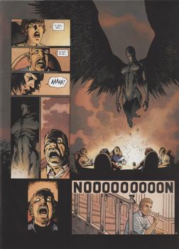 remarques: | Utah, juin 1997, Debrah détruit un convoi de trafic d'armes appartenant à la compagnie Sandor Weltman sur ordre de son chef (5 pages sans texte) chez Josh, on commente l'affaire des stryges, des êtres néfastes qui agissent par l'intermédiaire des humains, ils les charment et les utilisent en leur accordant certains avantages mais toujours pour leur bénéfice, ils représentent vraiment le mal >> p. 10 exemple avec Crombie pour qui le président était un obstacle, c'est lui qui a imaginé l'attentat de Southgate avec l'aide des stryges, mais il a échoué et il a été éliminé par les stryges >> p. 14/15 règlement de comptes entre Debrah et Brodie, son chef >> p. 20 Kevin reprend contact avec Nolan, discussions entre eux sur le manège forain, discussions qui finissent par des coups de feu et qui n'apportent rien de nouveau à l'affaire sauf que Nolan propose maintenant à Kevin de travailler avec lui entretemps Debrah poursuit ses recherches et découvre le fabricant des armes biologiques: Western Union Chemical, une société-écran de Sandor Weltman >> p. 31 le corps astral qui quitte le corps après la mort physique mais qui ne disparait pas la suite des évènements: - une séance de medium est projetée avec la veuve Grosvenor pour parler avec son ex-mari - l'accord avec le journaliste qui aura son scoop si Nolan trahit (divulgation des informations détenus par Kevin et Debrah) - Debrah qui en solitaire part à la chasse sur Weltman & Co. - mention de la femme de Josh qui a été victime d'un stryge par le baiser de l'oubli >> p. 47/48 la séance de medium qui donne lieu à l'apparition d'un stryge qui fait écrire à Gallagher un texte indéchiffrable >> un épisode toujours intéressant, le rythme persiste et la trame reste captivante y compris pour la séance de medium pages de garde: Homère et les sirènes = 2 mythes fondamentaux: les vampires et les sirènes avec le chant séduisant des sirènes |