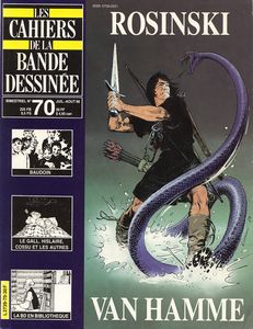 remarques: | cahier assez moyen (sujets trop recherchés) sauf pour la partie Thorgal première partie: entretiens avec Yslaire né en 1957, avec Grzegroz Rosinski né en 1941 de nationalité polonaise et avec van Hamme né en 1939 - analyse de Thorgal, l'enfant des étoiles, du heroïc-fantasy et du fantastique, avec le héros Thorgal et sa femme Aaricia qui cherchent tous deux le bonheur et qui vieillissent en mettant au monde leurs enfants. - analyse de la série Hans, voyageur temporel - oeuvres de van Hamme: XIII, Largo Winch, Thorgal, SOS bonheur et aventures de Corentin deuxième partie: la BD dans les bibliothèques, analyse des études de BD, la BD argentine, discussions sur les cases mémorables, le psychisme dans l'art BD, la peinture par la bande dessinée (telle la tapisserie de Bayeux) + entretiens avec Edmon Baudoin né en 1942, dessinateur pas trop connu, spécialisé dans le noir&blanc |