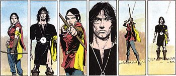 remarques: | album-charnière où Thorgal rencontre plusieurs nouveaux personnage qui joueront un rôle important dans la suite de la série: - Tjall, le fougueux, un jeune compagnon - Arghun pied-d'arbre, l'armurier - Kriss de Valnor, une jeune diablesse et super-douée au tir à l'arc - Sigwald le brûlé, compagnon de Kriss démêlés avec la tribu des calédoniens et leur pierre de sang, dérobé par Kriss de Valnor, visite à l'armurerie de Arghun, pied d'arbre ou jambe de bois, tous prendront part à un formidable concours de tir à l'arc, mais par la suite Sigwald sera le premier des trois à mourir, Kriss restera l'alliée, mais aussi la rivale de Thorgal et Tjall le fougueux deviendra le compagnon fidèle de Thorgal >> p. 12 la panoplie des différentes flèches fabriquées par Arghun >> p. 15 le stand de tir pour les essais de tir à l'arc >> p. 33 à 38 le concours de tir à l'arc >>> superbe scénario et graphisme, un album qui atteint un des sommets de la série avec un coloriage sublime, Van Hamme est un extraordinaire conteur et Rosinski un super dessinateur |