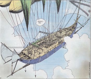 remarques: | début d'un nouveau cycle qui pourrait s'intituler: la mission Qâ suite à un chantage organisé par Kriss de Valnor (l'enlèvement de Jolan et Arghun comme otages), celle-ci oblige Thorgal et Tjall à la suivre dans l'exécution d'une mission spéciale, laissée à l'écart, Aaricia décide de se joindre aussi à l'expédition expédition vers le pays de Qâ en utilisant des bateaux-volants >> p. 21 la légende du lointain pays de Qâ où se déroule un combat entre deux faux-dieux - le mauvais, Ogotaï qui veut dire "venu d'ailleurs" dans sa capitale Mayaxatl et qui veut soumettre tout le pays Qâ en utilisant les tribus locales dont la principale est celle des Chaams, opposée à la dernière tribu qui résiste à l'emprise d'Ogotaï: les Xinjins dirigé par un autre faux-dieux: Tanatloc, cette fois un dieu de paix la mission du groupe de Kriss: s'emparer du casque magique d'Ogotaï qui sans ce casque, perd tous ses pouvoirs n.b. ces deux faux dieux sont en fait les rescapés de l'expédition spatiale du peuple des étoiles (>> voir album 7 l'enfant des étoiles) >> p. 36 la cité bien protégée des Xinjins >> p. 37 le combat aérien avec abordage entre les bateaux-volants >>> à nouveau un excellent scénario et graphisme et un bon début de nouvel épisode |