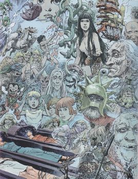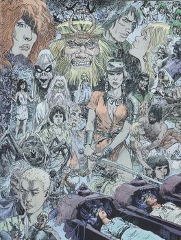 remarques: | après une sérieuse discussion avec Aaricia, Thorgal se déclare d'accord de rejoindre Northland, leur village viking du nord, toutefois en longeant une côte désertique, ils rencontrent des habitants qui les forcent à rester avec eux, ce sont des survivants du peuple des étoiles >> p. 19 l'histoire des derniers survivants du peuple des étoiles partis à la recherche du vaisseau de Varth et Xargos (>> voir l'épopée au pays Qâ et l'album de l'enfant des étoiles) qui ont fait naufrage dans une région désertique de la terre et qui n'ont plus pu quitter cette terre hostile où se trouve les vestiges de la civilisation atlante (= le royaume sous le sable) entretemps ils ont réparé leur vaisseau spatial et avec l'aide de Thorgal, ils veulent dominer le peuple viking en se faisant passer pour des dieux et conquérir le monde, bien sûr Thorgal refuse de les suivre, mais sa mémoire est passée à l'introspecteur >> p. 20/21 les souvenirs de Thorgal aidés par trois membres du peuple des étoiles (Tiago, frère d'Ileniya et Chrysios, membres du peuple des étoiles), Thorgal réussira à faire échouer les plans du contarque Sargon, mais Chrysios y laissera sa vie débarrassés de cette menace, la famille Thorgal avec Tiago et Ilenya continue son odyssée >> c'est un récit tiré de celui du pays Qâ, un intermède dans les aventures de Thorgal avec un scénario sans grande surprise et un graphisme qui reste malgré tout agréable avec tendance peinture-aquarelle que Rosinski introduira définitivement un peu plus tard dans ses albums annexes - couverture de l'album - le royaume sous le sable (une cité atlante) - les souvenirs de Thorgal |
