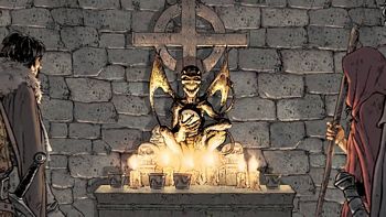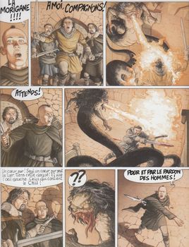 remarques: | IIème cycle, série les chevaliers du pardon la suite de la série avec l'apparition du Guinea Lord qui appartient au diable allié avec la morigane "Mornoir" qui s'est échappée de son puit pour pourchasser une morigane qui a trahi et qui se fait appeler la "Fée Sanctus" de son côté, Seamus le jeune rencontre Eïrell, un de ses compagnons d'étude, tandis que Sill Velt, le chef des chevaliers du pardon continue sa chasse aux moriganes et invoque pour l'informer le "cryptos" = l'esprit malin >> p. 12 l'apparition du "cryptos" qui révèle à Sill Valt q u'une morgane est devenue "la fée Sanctus" qui detient tous les secrets des morganes et qui est pourchassée par celles-ci pour trahison cette fée se trouverait parmi les porcs du Gorwin Clahg de son côté, Eïrell, déçu par Seamus, devient l'allié de la "Mornoir" et l'aide à s'échapper du puit, tous deux vont aussi s'allier avec le Guinea Lord, une créature du diable, pour traquer la fée Sanctus >> p. 28 la morigane "mère" Mornoir ceux-ci retrouve la fée Sanctus mais Seamus va la défendre et est gravement blessé par Eïrell qui à son tour, est détruit par un élément mystérieux alors que Sill Velt affronte le Guinea Lord >> p. 32/33 le jeu du Fitchell l'aventure finit par un duel entre Sill Valt et le Guinea Lord durant lequel Sill Valt va succomber mais il sera sauvé par la magicienne Luchorpain qui utilise l'anneau de Vysald pour éloigner Guinea Lord tandis que la fée Sanctus disparait après avoir guéri Seamus tandis que la menace du Guinea Lord demeure >> un récit plutôt intéressant et à rebondissement grâce à l'apparition de nouveaux caractères, cette fois Dufaux s'est donné de la peine tandis que le graphisme de Delaby reste excellent |