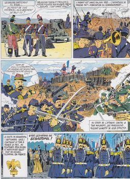 remarques: | premier épisode: 1622 à 1871, les dernières cartouches scénariste: Serge Saint-Michel (principalement des albums d'histoire tel le Triérarque, etc), dessinateur: René Le Honzec (principalement des albums d'histoire tel la Chouannerie, la Vendée) début au Canada (Quebec) durant le XVIIème siècle pour la colonisation de la Nouvelle France et les fantassins embarqués deviendront les troupes de la marine, ce seront les compagnies de la mer en 1622 organisées par Richelieu et Colbert qui en feront le régiment royal de la marine, conquête des Antilles (Martinique, Guadeloupe) les indigènes seront également engagés dans ces troupes de la marine qui deviendront coloniales, par la suite on surnommera les troupes de marine: les marsouins (= fantassins) et les bigors (= artilleurs), il y aura aussi les tirailleurs sénégalais et les zouaves ces troupes se battent au Sénégal (1830) contre les maures, à Madagascar en 1840 et dans les îles du Sud, conquête de la Polynésie (Tahiti) en 1846 1857, expédition en Chine, prise de Pékin et de Tien-Tsin, combats contre les tartares, campagne d'Indochine = Cochinchine constituée après coup du Tonkin, Annam, Laos, Cochinchine (delta du Mekong) et Cambodge 1862 expédition du Mexique, campagne de Crimée, guerre de 1870 où les troupes de marine se distinguent en défendant Bazeilles jusqu'aux dernières cartouches > > un sujet original bien traité avec un graphisme convenable autres titres dans cette collection: - Guillaume le Maréchal, Roland Garros - Alain Gerbault, la cour des grands - Overlord, le sultan de feu |