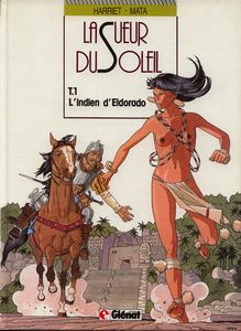 remarques: | Mata et Harriet retracent une page d'histoire avec justesse et élégance: la destruction d'une culture et la conquête d'un continent, l'or étant la sueur du soleil l'histoire de deux adolescents (Quitos et Orocomay) pris dans les remous d'une expédition espagnole entre l'Amazone et l'Orénoque à la recherche de l'or au pays de l'El Dorado, Quitos sera le seul épargné grâce à Orocomay, mais il devra boire les larmes de l'oubli >> le graphisme est bien conçu et le scenario tout à fait intéressant où l'on retrouve pêle-mêle romantisme, sorcellerie et sauvagerie Information à l'origine, la sueur du soleil est une série de la collection Vécu de Glénat (des aventures historiques) en cinq tomes, le scénariste Gregorio Muro Harriet y raconte l'épopée d'un jeune conquistador espagnol, Marcos de Asteasu, qui tombe amoureux d'une indienne, Orocomay, dont le peuple connait l'existence d'une ville indienne remplie d'or et de pierres précieuses, il n'en faut pas plus pour déclencher chez les espagnols une fièvre de l'or et de nombreux complots cette histoire sur fond de réalisme historique plonge ses lecteurs au cœur de la colonisation sauvage du nouveau monde, ponctué de nombreux massacres d'indiens et de la légendaire frénésie de l'or qui l'a accompagnée, la fiction prend le relais de l'Histoire avec l'introduction de la mystérieuse cité perdue des indiens, l'Eldorado, Marcos, le héros, et son amie Orocomay vont devoir affronter moult dangers et complots avant de pouvoir trouver la paix dans ce paradis perdu entre l'Amazone et l'Orenoque, une aventure exotique réussie, retranscrite par le trait réaliste assez classique de José Manuel Mata, tant au niveau des décors que des personnages |