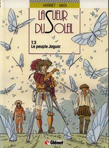 remarques: | l'expédition se poursuit avec la cérémonie de l'homme-jaguar = yee-masha, avec les chiens-tueurs de Klaus, avec l'histoire du champion aztèque Ome Tecpatch = 2 couteaux, et avec la traversée de la clairière aux papillons bleus = l'esprit de Boraro, l'esprit des malins entretemps Orocomay est capturée par la tribu des hommes-jaguars et Quitos part à sa recherche avec l'aide de Aripari, l'assistant de Aracu, le père de Orocomay >> un très bon album, peut'être le meilleur de la série, un scenario à rebondissement, un graphisme étudié et surtout une jolie couverture d'album |