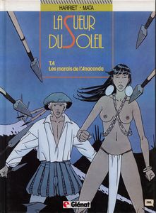 remarques: | l'expédition progresse lentement depuis que Quitos les a quitté, une tribu d'indios accepte contre récompense de les guider vers le temple d'El Dorado, mais il faut encore traverser les marais de l'anaconda entretemps, Quitos et Aribari sont capturés par la tribu cannibale d'Ortaz qui les condamne à la cérémonie de la crucifixion à l'occasion de la messe du dimanche, mais ils seront délivrés par l'expédition arrivée juste à temps plus loin, au temple, la tribu d'El Dorado doit affronter la tribu des adorateurs du serpent de sang qui seront à leur tour combattus par les conquistadores (=usachies) arrivés au temple >> toujours un bon scénario devenant un peu plus complexe, mais toujours intéressant et un graphisme bien étudié |
