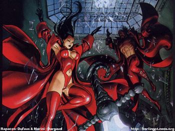 remarques: | première édition octobre 1998, semblable à la première édition septembre 1998, mais non marquée seconde édition Camilla et Drago, son frère, des vampires-rapaces exécutent les membres dégénérés d'une secte à l'aide d'une aiguille fichée dans un kyste de l'oreille droite la commissaire Vicky Lenore et son adjoint Spiaggi enquêtent et échappent à un mystérieux attentat >> série d'un nouveau genre, scénario plutot banal, mais un bon graphisme colorié de feu et de sang par Marini avec une couverture bien réussie Information dans un album final hors série, intitulé "je reviendrai" en 2006, les vampires ont subi leur plus grand revers depuis plus de cinq cents ans, leurs leaders ont été massacrés par un mystérieux prêtre et les membres de leur communauté, arrêtés par les policiers de Spiaggi, les descendants de Molina, qui comme leur aïeul, refusaient de devenir des créatures du jour, ont payé leur combat de leur vie, mais Aznar Akeba et Vicky Lenore ont repris leur mission, sur des illustrations d'Enrico Marini, le scénariste Jean Dufaux ouvre les carnets intimes des protagonistes de cette aventure et lève un coin du voile au sujet de leur devenir |