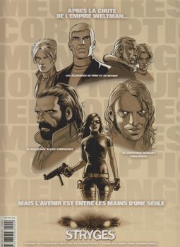 remarques: | premier volume du 3ème cycle Noël 2011 en Sibérie un commando dirigé par Debrah est en marche pour s'emparer d'un stryge mâle mais il n'est pas facile de capturer vivant un stryge! à Vancouver, Kevin en détention provisoire assiste avec le dr Shelton à l'opération surprise pour la libération d'un détenu super-dangereux: Austin Carson dit Sinner dans les Key Islands, deux gangs s'entretuent pour de la came, le leader d'un de ces gang est Jill dans les Cévennes, Abeau et Cyliana rencontrent un groupe de stryges pour discuter du destin des stryges, on attend toujours un signe de Debrah mais selon les stryges, Debrah a choisi la voie de l'affrontement en enlevant un stryge et veulent maintenant avec l'aide d'Abeau et de Cylinia éliminer Debrah, mais il n'est pas non plus facile de supprimer Debrah >> p. 24/25 Kevin et Shelton, prisonniers de Carson Sinner, subissent le jeu du gibier et des chasseurs mais réussissent à s'en sortir avec Tom et Jenny, deux assistants scientifiques, Debrah est à l'origine de l'enlèvement du stryge mâle qui avait été localisé grâce à la "Society of research for contact and inducement", fondée par Tom et Jenny Deborah avec Tom et Jenny veut aussi percer le mystère des stryges en relation avec la météorite, notamment leur stérilité en essayant un remède inventé par Sandor Weltman pour féconder les stryges et Debrah a maintenant besoin d'une stryge femelle en Floride, Jill est éliminée par son chef pour incompétence mais elle est vite remise sur pied et part à la recherche de Kevin >> p. 34 le musée des horreurs avec les hybrides et autres monstres collectionnés par Abeau y compris ses explications (douteuses) sur la bête du Gévaudan, Carson Sinner serait le descendant de la bête du Gévaudan!! après leur exercice de survie, une idylle se développe entre Kevin et le dr Shelton qui a remplacé Melly dans le coeur de Kevin, alors que Debrah explique à Tom l'origine de son amitié avec Chrys Aor, son fidèle assistant et un hybride comme Debrah ensemble, ils ont découvert une liste de hybrides sélectionnés par ex-Sandor Weltman dont fait aussi partie Carson Sinner la suite dans le prochain album >> album avec toujours un graphisme respectable de Guérineau mais le scénario tout azimuth de Corbeyran pour ce 3ème cycle ne convainc pas encore tout-à-fait, il semble que Corbeyran n'ait pas encore trouvé le fil conducteur pour ce 3ème cycle, aussi nouveau 4ème plat pour ce troisième cycle n.b. en dernières pages, l'univers des stryges en bande dessinée: - le chant des stryges 12 albums parus (deux cycles) - le clan des chimères 6 albums parus + un album hors-série sur les stryges - le maître de jeu 6 albums parus (l'origine de la légende des stryges avec le grimoire de Venoncius) - le siècle des ombres 2 albums parus (les origines de Sandor Weltman) et aussi en parrallèle: - Asphodèle 4 albums parus (la journaliste anglaise Asphodèle au prise avec son fiancé qui est sous l'emprise d'un stryge) - la loi des 12 tables 6 albums parus (l'histoire de la sorcière Asphodèle) - les hydres d'Ares 3 albums parus (l'histoire d'un monstre sanguinaire sur la planète Mars) |