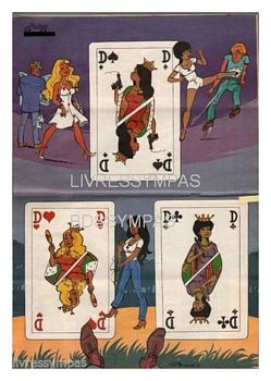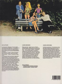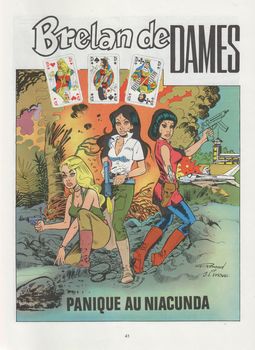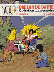 remarques: | début d'une série parue dans le Journal Tintin en 1980 avec un trio de filles érotiques, genre Bond-Girls, le tout basé sur une série TV elles sont trois dames pour un brelan: - la brune Jaimie Grisbee, l'américaine aux yeux verts, c'est la meneuse du groupe qui est aussi la dame de pique, une dame de choc: qui s'y frotte s'y pique - Amande Wenn, une blonde anglaise aux yeux bleux, la dame de coeur elle est journaliste et c'est la séductrice du groupe, elle résout souvent ses problèmes par une boutade et un gentil sourire - la noire Laurence Tonkin, une jolie eurasienne, est la dame de trèfle et championne en arts martiaux, rapide, vive, mordante, c'est elle qui a le plus sale caractère des trois filles du brelan dans ce premier album, toutes les trois sont en prise à des terroristes qui sabotent des pétroliers et causent des marées noires un 2ème épisode dans le même volume: panique au Niacunda >> rien de très exaltant, petit scenario de Vernal, mais amusant et bon graphisme |