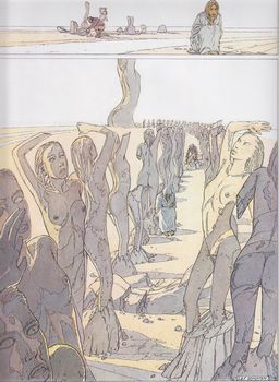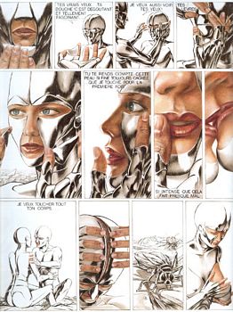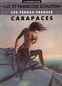 remarques: | album en 6 épisodes: 1/ carapaces (l'humain à la carapace) n.b. un épisode moitié couleur moitié noir&blanc 2/ la débandade (dématérialisation) 3/ la crevasse (dans les filets du bio-robot lubrique) 4/ l'échantillon (un échantillon humain) 5/ urbanisme (le village des brumes) 6/ le tailleur de brume >> un bon graphisme mais un scénario plutôt difficile à suivre |