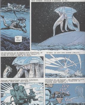 remarques: | au nord de l'Ecosse, une équipe d'agents spatio-temporels (les spectres d'Inverloch) se met en place pour contrer la menace d'Hypsis qui menace la Terre voulant dérégler le dispositif atomique de Galaxity afin de compléter l'équipe, Valerian part capturer un Glapum'Tien, grand dépendeur d'andouilles et très difficile à prendre vivant, mais qui a le pouvoir d'anticiper le futur, Inverloch servant de relais spatio-temporel >> p. 22 les shingouz qui prédisent la mort du colonel Tloc, mais lui proposent aussi un guérisseur pour le sauver >> p. 29 le haut commandement soviétique dessiné par Bilal >> p. 36 l'atterrissage sur le gazon super soigné de lady Charlotte et lord Seal avec l'arrivée à Inverloch Castle de Monsieur Albert (voir les épisodes précédents) >> tout est en place pour l'action, mais son but reste encore plutôt vague, scénario assez complexe et graphisme moins élaboré, la suite dans le prochain album grâce au relais spatio-temporel n.b. c'est peut'être le grand prix de la ville d'Angoulême 1984, mais ce ne semble pas être le grand prix pour le lecteur! |