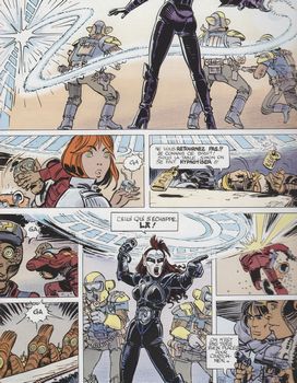 remarques: | album à nouveau de 64 pages afin de remettre en état leur astronef, les deux agents spatio-temporels arrivent sur la planète Rubanis où règnent les cercles du pouvoir (4 cercles: cercle de l'industrie, cercle du commerce, cercle des arts et de l'amusement et cercle religion+administration), plusieurs gouvernants se disputent le pouvoir: notamment le colonel Tlocq, chef de la police et Na-Zultra, cheffe des dissidents ainsi que S'Traks, chef des syndicats et chauffeur téméraire de taxi toutefois après enquête avec les shingouz, on découvre que le maître absolu sur Rubanis est le maître du 5ème cercle = le maître des images = l'hyper-prince qui sera renversé par Valerian et c'est S'Traks qui prendra le pouvoir >> p. 19 réapparition du transmuteur Grognon de Bluxte >> p. 27 Na-Zultra, la femme au fouet hypnotiseur >> malgré un certain fond social, cet album reste toujours très moyen et se perd dans le cosmos de la série, un récit quelque peu dérivé du film le 5ème élément, le graphisme ne s'améliore guère malgré les pages en papier glacé (= recouvert d'une pellicule glacée souvent brillante) |