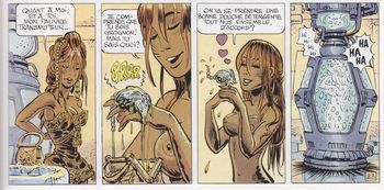 remarques: | rencontre avec l'immensissime calife d'Iksaladam et son rejeton le califon qui a été kidnappé avec Laureline par le Quatuor Mortis, ceux-ci veulent faire chanter le calife, car celui-ci possède les plus grands gisements d'ultralum de l'univers (le carburant ultra-luminique) Valerian se met à leur recherche et les délivrera grâce à l'aide des Shingouz, retrouvailles aussi avec Jal et Kistna, sa victime extra-terrestre réincarnée >> p. 20 le sas d'entrée de Point Central >> p. 27 la seule fois où Laureline est véritablement bien dénudée >> p. 38 la laiterie des mamelles terriennes > > la série se déglingue toujours un peu plus malgré une trame assez amusante annexes - couverture de l'album - une première page bien dessinée |