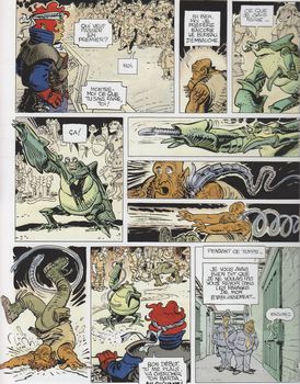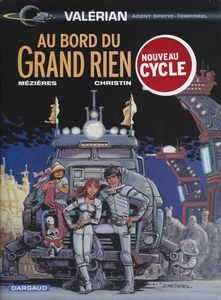 remarques: | nouveau cycle mais aussi début d'un grand rien dans la série, retour aux albums à 48 pages jouant les marchands ambulants avec un vieux camion de l'espace. Valerian et Laureline se retrouvent là où le monde connu s'arrête et où commence l'univers en formation: le Grand Rien Laureline engage comme assistante Ky-Gaï, une jeune fille de la lune de Phnom-Nam, mais sous leur déguisement, Valerian et Laureline sont à la recherche de la planète Terre, rayée de la carte du cosmos apparition de curieux personnages: - le peuple Limboz qui détient un trésor important - le spiglic, animal qui rend bienheureux - l'exploratrice Singh'a Rough'a de la constellation du Grand Rien - le tchoung traçeur qui retrouve toujours le chemin de ses maîtres - le lieutenant Molto Cortès et le dr. Chal'Darouine c'est à Port-du-Gouffre que Valerian et Laureline apprennent qu'une expédition menée par la commandante Singh'a Rough'a va partir pour le Rien de Rien du Grand Rien lorsqu'elle aura fini de recruter son équipage dont feront partie Valerian et Laureline mais déjà le triumvirat des cercles du pouvoir (voir ce titre) en convenance avec les Wolochs (des grandes pierres vivantes) sont sur leur piste >> un nouveau cycle au pauvre scénario et au graphisme sans grand changement (à part les deux pages 41 et 42) INFORMATION nouveau cycle sur Valerian et Laureline - Valerian intègre en 2713 le service spatio-temporel de Galaxity, mégapole de la Terre du futur, pilote d'astronef virtuose et agent discipliné, il commence à sillonner l'espace et le temps pour faire façe aux dangers pouvant menacer sa planète, devenue l'une des grandes puissances cosmiques - Laureline, elle, sauvageonne de la forêt et même licorne à ses heures, vient du Moyen Age, elle a sauvé la vie de Valerian, parti en mission dans cette époque troublée où la sorcellerie peut se marier à la technologie pour modifier le passé de la Terre... et donc son futur - les talents réunis des deux jeunes gens ne vont pas empêcher une explosion nucléaire d'engloutir New York sous les eaux en 1986. mais là, c'est l'avenir qui sera réécrit par eux quelques années plus tard, de façon à annuler ce cataclysme. hélas dans cette manipulation à haut risque, c'est la Terre du futur qui disparait de l'univers connu -privé d'ambassade et de consignes sur la gigantesque planète artificielle Point Central où se retrouvent toutes les races et les civilisations de l'univers dans une sorte d'ONU bigarrée, Valerian et Laureline n'ont plus que leur astronef pour survivre. ils acceptent alors des missions qui les emmènent vers les mondes les plus étranges - dans leur quête, ils ont des alliés comme les inénarrables espions shingouz ou le délicieux monsieur Albert, leur contact à Paris de nos jours. des ennemis aussi, comme les faux dieux d'Hypsis, Sat l'archange déchu ou le triumvirat dirigeant la puissante planète Rubanis, sans compter de monstrueuses pierres noires dont on ne sait rien - c'est le thème d'un nouveau cycle d'aventures qui les emmènera du mystère du Grand Rien vers la révélation de l'Ouvre-Temps |