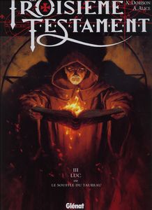 remarques: | 2ème édition, mai 2003 (EO novembre 2000) toujours sur la quête du 3ème testament à travers l'Europe, un testament qui ne doit pas être connu des hommes, car les 7 sceaux seront brisés et le 3ème testament libérera les fléaux de l'apocalypse: le jugement dernier où Marbourg apprend, lors de son emprisonnement, qu'il devait sa vie, il y a 20 ans en arrière, au démon car Marbourg devait vivre pour servir le plan du démon (il semble toutefois que cela n'ait pas fonctionné selon le plan du démon) prisonniers sur l'île-forteresse de Stornwall, Marbourg et Elisabeth sont délivrés par Trevor qui a réussit à se soustraire à ses gardiens grâce à un traître infiltré par les templiers dans les troupes de Uther-le-Pourpre >> p. 14/15 l'escapade de Marbourg dans le scriptorium de Stornwall (copistes, enlumineurs, traducteurs, cabalistes, exégètes et théosophes) >> p. 18/19 et la fuite de Stornwall prochaine étape: rejoindre l'abbaye de Saint-Luc en Bohème avant la horde noire et récupérer la dernière clé des carnets avant Sayn le démon >> p. 28 le passage du pont des templiers >> p. 30 l'arrivée à Saint-Luc après le passage de la horde un moine de St-Luc rescapé explique toutefois à Marbourg le secret de l'énigme: un carnet pour 7 phrases, 7 phrases pour un mot: le 3ème testament et l'énigme sera résolu grâce à la rotule et le nom qui apparait est Migdalavana, reste à savoir où se situe Migdalavana >> p. 47 la cérémonie du bien et du mal Marbourg = le fils du lion, un nouveau Jésus? Elisabeth: Marie de Magdalene? et Sayn le démon les sept sceaux seront brisés et le 3ème testament libérera les fléaux de l'apocalypse, le jugement dernier la fin de l'album est aussi un mystère démoniaque: Marbourg meurt mais ne meurt pas, Elisabeth vit mais ne vit pas >> 3ème volume de la série avec un récit qui devient de plus en plus incohérent, surtout de par un développement vraiment complexe, mais le graphisme reste toujours grandiose n.b. le taureau = sacrifice d'expiation = symbole de Luc |