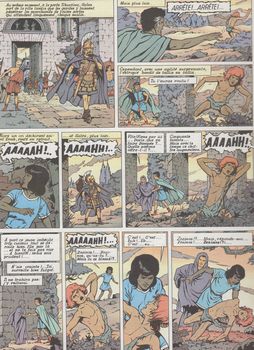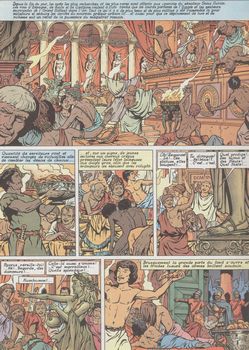 remarques: | à Rome, on découvre l'existence de Spartaculus, fils de Spartacus, qui pourrait être politiquement utilisé dans le combat que se livre César et Pompée, Alix décide de mettre Spartaculus à l'abri de César et de Pompée en le conduisant avec l'aide de Galva dans son pays natal, la Thrace on y retrouvera un grand nombre de personnages tels que Maia, la femme de Spartacus, Ardelès ami de Maia, Fulgor le trafiquant romain, Zozinos le petit infirme, le gouverneur débauché Livion Spura, etc >> p. 16 Zozinos, le petit garçon avec la jambe amputée qui court comme une gazelle à noter: - l'histoire de Spartacus - la séance du Senat en page 13 - la somptueuse résidence de Livion Spura sur les bords du lac de Côme >>> scénario appréciable et toujours un bon graphisme |