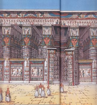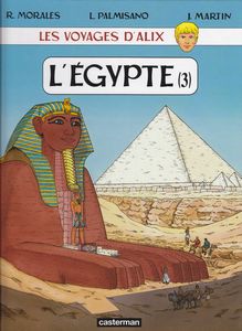 remarques: | 3ème et dernier volet sur l'Egypte 1) le RAMESSEUM = mémorial historique de Ramses II (le plus illustre des pharaons) 2) GOURNAH le temple de Séthi Ier 3) DENDERAH les temples d'Hathor et d'Isis, un des temples égyptiens les mieux décorés, bâti par Ptolémée XII Aulète, père de Cléopâtre, un véritable livre de pierre 4) ABYDOS le temple d'Osiris, construit par Séthi Ier avec l'OSIREION = sanctuaire souterrain entouré d'eau (peut'être inspiré à Jacobs pour la chambre d'Horus dans le tome 2 de la grande pyramide) 5) TELL EL AMARNA = la ville d'Akhenaton, le roi hérétique, adorateur du disque solaire Aton, Toutankhaton, son fils prit le titre de Toutankhamon et réintroduisit le culte d'Amon 6) SAQQARAH nécropole construite en 2668 BC par Imhotep et le roi Djeser, c'est un mastaba surmonté d'une pyramide en degrés de 68 m de hauteur, ce fut la première pyramide 7) GIZEH les 3 pyramides et le sphinx de Gizeh sont les symboles de l'Egypte, Cheops en 2583 bâtit sa propre pyramide de 148 m de haut, ce fut la première pyramide véritable à façes lisses; son fils Chephren bâtit la 2ème pyramide de 137 m de hauteur avec la statue du sphinx qui représente le dieu Rê-Horakhty, le soleil levant et le gardien de la pyramide; le fils de Chephren, Mykerinos, bâtit la 3ème pyramide de 70 m de haut 8) explications sur les méthodes de construction des grandes pyramides dont l'hypothèse la plus vraisemblable est la méthode de la rampe enveloppante 9) détails sur les symboles des pharaons: les couronnes, le fouet, le crochet, le sceptre, l'ankh, la fausse barbe et l'uraeus = cobra dressé, représentant force, puissance et vie >> des récits très intéressants, mais des illustrations un peu moins recherchées (absence du maître?) annexes - couverture de l'album (pyramide Cheops et le grand Sphinx) - façade monumentale du temple d'Hathor à Dendérah |