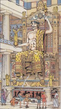 remarques: | album sur les jeux olympiques célébrés à Olympie, jeux qui se déroulaient tous les 4 ans pendant 5 jours et où se trouvait aussi le temple de Zeus et sa magnifique statue (une des 7 merveilles du monde), - le village olympique était situé à Elis près d'Olympie et était relié à Olympie par la Voie Sacrée - il y avait environ 7 disciplines: course à pied, course à pied en armes, lancement du disque, lancement du javelot, saut en longueur, lutte (boxe, pancrace et pugilat) et course de chars, le pentathlon réunissait disque, javelot, saut, course et lutte; le tout avait son règlement et on devait prêter serment à Zeus >> un album intéressant et instructif, mais un peu moins recherché que les précédents sur la Grèce annexes - couverture de l'album - statue de Zeus dans le temple de Zeus à Olympie |