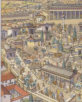 remarques: | premier volet de la Grèce antique dans la série "les voyages d'Alix", édité en 1990 par les éditions Deux Coqs, intitulé alors les "voyages d'Orion" et qui fut réédité par les éditions Casterman en 2000, sans changement notable par rapport à l'album originale de 1990 détails >>>> voir tome 1 à noter que le chapitre sur l'Erechthéion n'est plus mentionné dans cet album annexes - couverture de l'album - vue générale de la voie sacrée à Delphes conduisant au temple d'Apollon - vue générale du Mausolée d'Halicarnasse |