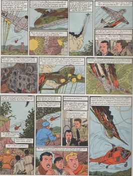remarques: | premier album de la série, 64 pages, imprimerie Raffy, édition française 2ème édition 1957A, avec point Tintin (édition belge EO = 1954) dernier titre "le puit 32" les débuts des aventures du reporter Lefranc, de son jeune ami louveteau Jeanjean, de l'inspecteur Renard et du dangereux criminel Axel Borg, le maître de la Tour Noire en Alsace qui fait du chantage au gouvernement français en menaçant de détruire Paris avec un missile atomique, ce sera la grande menace >> p. 10 un peu d'humour sur les alsaciens: "un licoptère, ch'ai rien fu, ya bas zette chose ici" >> p. 24 Axel Borg, un gentleman-farmer-industriel >> p. 29 prépublication du reporter Lefranc dans Tintin en 1952, les trains sont encore à la vapeur >> p. 38 l'ascenseur qui avait permis à Axel Borg d'intervenir rapidement dans les ruines de la Tour Noire (mais avec son cheval?) >> p. 39 des bougies dans le salon de l'hôtel >> p. 42 la chambre d'hôtel qui n'est pas 4 étoiles >> p. 48 pas encore de télévision en 1952 (contrairement à Tintin dans l'île noire) >> p. 57 Axel Borg, le nouvel Hitler >> un album du tonnerre, le suspense est à chaque page avec un texte bien étudié, et un graphisme impeccable au coloriage admirable, probablement le meilleur de la série n.b. petite louange aux alsaciens |