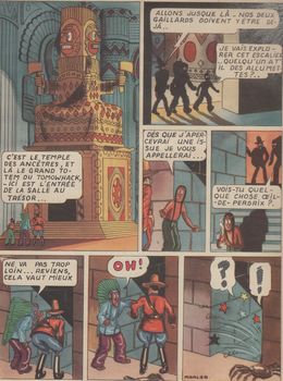 remarques: | album couleur de 64 pages, récit paru dans le journal Bravo, les débuts de Martin qui signait Marleb (= Martin et Leblicq, son partenaire en son temps) Oeil de Perdrix un jeune indien perd et retrouve et reperd le fameux calumet de sa tribu indienne qui contient le plan d'un trésor très convoité par deux rénégats: Domingo dit le sorcier et Gonzales dit le dur à cuire >> le premier album dessiné par Martin et le seul album à avoir édité par le Journal Bravo, des aventures naïves mais déjà bien dessinées avec un très bon coloriage Information autres oeuvres de Martin signé Marleb avant son entrée dans le Journal Tintin: Lamar, l'homme invisible (1947), Monsieur Barbichou (1947), le hibou gris (1946), oeil-de-perdrix (1948), le secret du calumet (1947) et la cité fantastique (1948) |