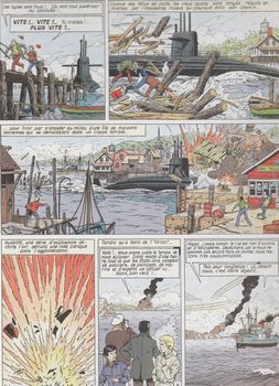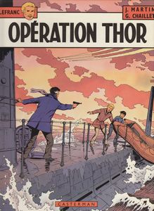remarques: | en vacances en Norvège, Lefranc et Jeanjean sont enlevés et transportés dans un sous-marin par Axel Borg, celui-ci explique à Lefranc qu'il va être le témoin impartial d'une opération spéciale, l'opération Thor consistant à submerger les USA de fausse-monnaie, de faux dollars, bien imités, qui causera une inflation spectaculaire et qui ruinera les USA, ce sera une guerre économique imparable le plan de Borg sera mis en échec par Lefranc, mais il semble que Borg soit devenu plus humain et fataliste >> p. 3 après sa Simca (grande menace) et son alfa romeo (les albums suivants), Lefranc possède maintenant une Range Rover au rouge éclatant >> p. 22 Lefranc qui admire les oiseaux depuis un sous-marin en pleine mer >> p. 30 des équipements de plongée avec des bonbonnes d'oxygène dans un tiroir >> p. 47 contrairement au peuple, la police est intègre et n'est pas intéressée aux faux dollars >> surtout un bon graphisme de Chaillet, le scénario est quelque peu naïf et la fin plutôt abrupte, mais l'idée reprise de la deuxième guerre mondiale est bien imaginée |