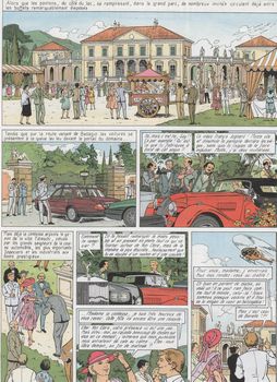 remarques: | enquête dans le monde de la formule 1 où règne la camarilla = petite chambre = société secrète pour influer au mieux certains intérêts particuliers dans le monde de la formule 1 >> p. 25 grâce à Lefranc, le curé sera content >> p. 35 Lefranc participe à un enterrement pathétique en fanfare et à la sicilienne >> p. 38 Axel Borg, sans barbe, déguisé en monsignor l'archevêque qui se fait baiser la main par une fidèle >> p. 40 les dieux de la police selon Lefranc >> p. 44 c'est horriblement somptueux Axel Borg y est mêlé à l'affaire et y affronte Lefranc (où Borg passe, le bonheur trépasse Lefranc dixit) mais suite à une erreur, Borg va se trouver en conflit avec la camarilla et demandera même le soutien de Lefranc en lui révéland comme scoop les secrets et les dessous de la camarilla >> récit ne présentant aucun intérêt particulier mais peut'être tout à fait d'actualité avec toujours un bon graphisme de Chaillet alors que décidément Borg doit se plaire en compagnie de Lefranc n.b. cet album parait 8 ans après le précédent "la cible" |