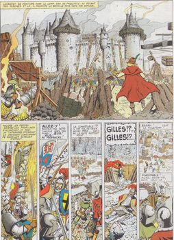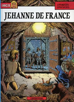 remarques: | - ce récit met en prise deux 2 "fausses" Jehanne (d'Arc), l'une avec une bande de mercenaires trouvera la mort dans une eau gelée, l'autre se rapprochant assez de Jehanne par son histoire se verra toutefois démasquée par Gilles de Rais lors du siège du château de Croussy n.b. on trouvera dans cet album quelque explication sur l'or de la mort du premier tome de la série, mais peu fournie (en page 40) >> un bon récit intéressant et surtout un superbe graphisme de Pleyers avec un coloriage très réussi, peut'être le meillleur album de la série, - dernier album Lombard, la série ayant été reprise par Casterman, le héros change aussi de nom, de Xan Larc, il deviendra Jhen Roque annexes - couverture de l'album original - une planche de l'album - couverture de la réédition |