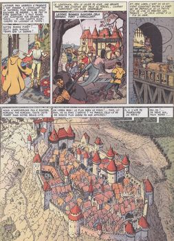 remarques: | - avec frère Parfait, Jhen se rend dans la cité de La Gore pour y organiser la défense contre une bande d'écorcheurs conduits par le sinistre Conrad Tierstein - la cité résistera vaillamment mais sur le point de succomber, elle sera délivrée par une troupe de chevaliers dirigés par Gilles de Rais et ses troupes qui élimineront l'armée des écorcheurs >> p. 38 le renvoi des ambassadeurs, façon Gilles de Rais >> bon récit et toujours un très bon graphisme |