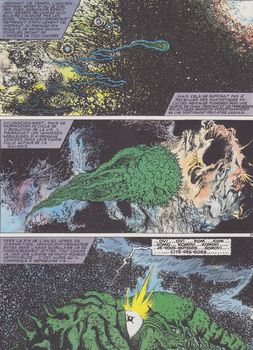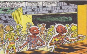 remarques: | la suite du périple du peuple zorien sur leur trajet, le vaisseau des zoriens tombe sur un quasar se révèlant être des stations relais établis par les Gogs qui prennent en charge le vaisseau et le parquent dans en endroit désaffecté en attendant la fin de la guerre entre les Gogs et les Lactériens mais entretemps, 00 s'est régénéré grâce à l'aide des êtres de lumière et retourne dans le vaisseau zorien qui réussit à échapper à l'attraction des Gogs occupés maintenant à combattre un virus anti-gog imaginé par les Lactériens et qui déciment les Gogs en grande partie tandis que le vaisseau zorien continue sa route vers une planète habitable ou en exode perpétuel >> un nouveau récit tout autant palpitant avec un graphisme encore meilleur, dommage qu'il n'y ait pas eu de continuation de cette série, un peu toutefois particulière et peut'être pas au goût de certains lecteurs n.b. les couvertures des rééditions sont nettement moins spectaculaires |