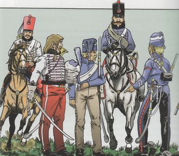 remarques: | introduction de la bataille de Waterloo où Napoléon commit ses plus graves erreurs au combat (et pourtant son plan de bataille était bien étudié) description des uniformes de la Grande Armée à Waterloo: infanterie de ligne, infanterie légère, chasseurs à cheval, hussards, dragons, chevaux-légers-lanciers, cuirassés, carabiniers, services de santé, génie, artillerie, équipement d'infanterie et de cavalerie avec leurs armements >> album instructif et plutôt intéressant avec quelques détails supplémentaires sur la bataille de Waterloo, bonne introduction de Martin sur la bataille de Waterloo, la gloire en revint à Wellington bien que Bülow et Blücher ont vraiment contribué à la victoire, toutefois Wellington eut la meilleure tactique façe aux troupes de Napoleon, un Napoleon peut'être plus affaibli par l'âge et la maladie, quoiqu'il en soit sa stratégie avait été bien étudiée: séparer les deux armées ennemies, mais Ney a échoué de prendre l'intersection des Quatre Bras et Grouchy a manqué d'initiative, laissant l'armée prussienne faire sa jonction avec les anglais n'empêche que Napoleon avec sa légende d'aigle blessé allait faire de lui un génie médiatique et ce fut l'homme sur lequel il s'est écrit le plus de livres au monde (selon Martin) selon Martin aussi, la bataille de Waterloo a été le mieux décrite par Stendhal dans la chartreuse de Parme que par Victor Hugo dans les Misérables (récit beaucoup plus romancé que celui de Stendhal) annexes - couverture 1er et 4ème plat - les cuirassiers de Waterloo - portraits de hussards les hussards étaient membres de la cavalerie légère, ils brillaient de par la beauté de leurs uniformes et de par leurs faits d'arme, leur rôle est offensif, menant au devant de l'armée des raids éclairs, assurant aussi au combat la liaison avec l'infanterie, ils portaient la moustache et surtout les cheveux tressés dont les tresse épaisses servaient à parer les coups d'arme blanche n.b. dans cette collection dirigée par Jacques Martin, on trouve aussi: - Alix, les voyages d'Alix, Lefranc - les voyages de Lefranc - Jhen, les voyages de Jhen - Keos, Orion - Loïs, les voyages de Loïs Information (Waterloo dans la BD), dont quelques principaux albums: - Waterloo par Pirlot+Eco (2008) - Waterloo, le chant du départ par Falba+Geminiani (2015) - Waterloo par TemPoe+Mor (2015) - Waterloo 1911 par Gloris+Zarcone (2008-2012) - la façe cachée de Waterloo (2017) Andreï Arinouchkine - Waterloo, la bataille de la bande dessinée par Didier Pasamonik (2015) |