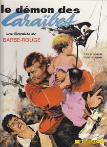 remarques: | premier volume de la fabuleuse série de Barbe-Rouge, contemporaine des autres séries parues dans Pilote: Astérix, Blueberry et Tanguy+Laverdure 48 pages, page de garde au voilier 1715, mer des Caraïbes, le brick de Barbe-Rouge "le faucon noir" arraisonne un galion espagnol, seul survivant: un petit garçon de 4 ans qui sera adopté par Barbe-Rouge sous le nom d'Eric >> p. 8, 1ère vignette: la censure est sauve à noter que les deux fidèles compagnons de Barbe-Rouge sont déjà présents: l'érudit unijambiste Triple-Patte et le géant noir Baba (ces personnages y compris Barbe-Rouge et son fils Eric seront souvent repris dans les aventures d'Astérix) sur le chemin du retour, le brick de Barbe Rouge, quelque peu endommagé, est poursuivi par une frégate espagnole fortement armée, ne pouvant livrer bataille, Barbe-Rouge réussira à dépister la frégate par ruse: en substituant durant la nuit à son navire une barque munie d'un fanal rouge (on pourra vraiment dire que Barbe Rouge se sauvera au nez et à la barbe rouge des espagnols), par la suite, Barbe-Rouge rejoint son repaire secret Barbe-Rouge se charge de l'éducation militaire d'Eric et enlève un groupe d'hommes de science à Carthagène pour parfaire l'éducation littéraire de son fils, par la même occasion il enlève Don Enrique, le fils du gouverneur de Carthagène mais un peu plus tard, pourchassé par un galion espagnol, son navire hors d'état de combattre, les instruments de navigation ayant été sabotés par Don Enrique, Barbe-Rouge devra se débarrasser de ses captifs pour ralentir la marche de son poursuivant, Don Enrique sera donc libéré et deviendra par la suite un des pires ennemis de Barbe-Rouge et d'Eric >> un premier album qui n'a encore rien d'exceptionnel, mais la série est bien lancée, nouvelle couverture d'album pour la réédition, la suite dans le roi des sept mers, titre curieusement mentionné à la 8ème place au 4ème plat (réédition 1990) annexes - 1er et 4ème plat de la réédition - 1er et 4ème plat de l'édition originale - la fameuse 1ère case de la page 8 Information cette bande dessinée d'aventure invite à embarquer à bord du Faucon Noir, le vaisseau du pirate Barbe-Rouge, qui, sous le surnom de "démon des Caraïbes", sème la terreur sur les sept mers au temps de la flibuste, au cours de l'attaque d'un navire dont tous les passagers et les membres de l'équipage sont massacrés, Barbe-Rouge épargne un bébé qui a été le seul à ne pas trembler devant lui, qu'il adopte et baptise Éric n'ayant ni femme, ni enfant, Barbe-Rouge compte bien en faire un pirate, mais le garçon est plus que réticent, pour ne pas perdre l'affection de ce fils adoptif, Barbe-Rouge se met de temps en temps au service du roi de France pour combattre ses ennemis espagnols et anglais, toujours accompagnés de Baba, géant noir et de Triple-Patte, savant unijambiste, les deux héros passent d'un océan à un autre afin de se battre pour la bonne cause, mais aussi pour découvrir des trésors ou secourir de belles captives (toutefois relativement peu nombreuses) la vedette de nombreux épisodes est tenue par Éric qui tient le rôle de héros positif de la série, Barbe-Rouge étant parfois ramené au rang de second rôle, Éric prendra comme nom de famille Lerouge pour se dissocier du passé de pirate de son père adoptif personnages principaux: - Barbe-Rouge, on ne connaît que son surnom dans la série principale, selon la série "la jeunesse de Barbe-rouge" de Daniel Redondo et Christian Perrissin, on apprend qu'il s'agit d'un breton et que son nom d'origine est Jean-Baptiste Cornic, il est borgne de l'œil droit, et il est fier, très intelligent, intrépide, physiquement très fort et très habile aux armes, meneur d'hommes, sans pitié, sans foi ni loi - Éric, son fils adoptif, qui se fera appeler plus tard Éric Lerouge - Triple-Patte, son vrai nom pourrait être Joseph Velu, vieil érudit polyglotte, unijambiste avec jambe de bois qui ne peut se déplacer qu'avec l'aide d'une béquille, d'où son surnom, il a contribué à l'éducation d'Éric - Baba, géant noir, ancien esclave libéré par Barbe-Rouge, compagnon fidèle l'auteur, Jean-Michel Charlier, place l'histoire dans un environnement historique assez fantaisiste, même s'il cite de nombreuses sources en bas de pages et intègre ses personnages dans des événements historiques réels, la plupart des objets, appellations, descriptifs et moments historiques sont réalistes, mais il n'en demeure pas moins que ce contexte historique marqué induit sur certains albums quelques imbroglios de date ainsi, l'histoire commence en 1715 (date citée dans le tome 1), avec l'adoption par Barbe-Rouge d'un Eric alors bébé, si on considère que le fils de Barbe-Rouge est âgé de 25 ans lors de ses aventures, on peut donc situer l'action de la série autour de 1740, pourtant, il est fait mention de Louis XIV quand Eric est condamné aux galères, puis gracié et restauré dans ses honneurs et titres à la suite de ses exploits alors que le roi-soleil est mort en 1715, plus tard dans la série, ce sera plus logiquement de Louis XV (roi de France de 1715 à 1774) dont il sera fait mention lorsqu'il s'agira pour Eric d'aller avec son vaisseau l'Épervier au secours de Fort-Royal (futur Fort-de-France) à la Martinique |